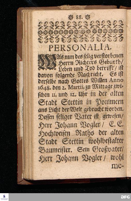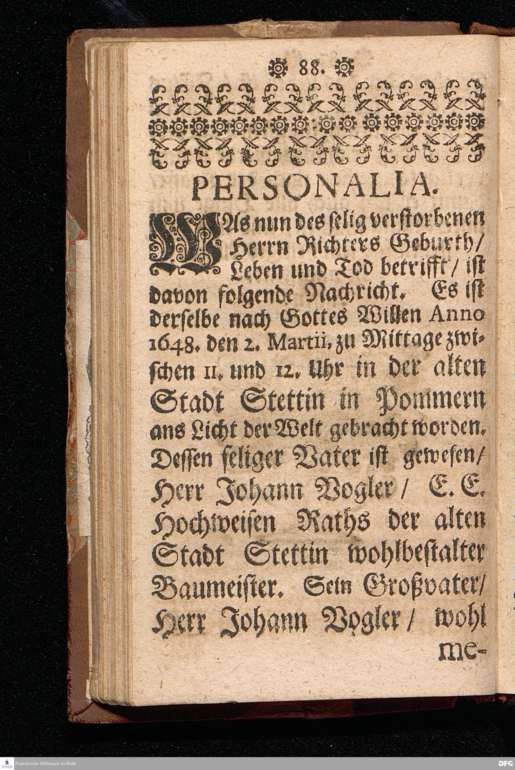 Die Von GOtt befohlne Predigt / Von der Hinfälligkeit des Fleisches / und der Beständigkeit des Wortes Gottes / Bey Beerdigung Des Tit.HERRN Jac.Voglers / Regierenden Richters zu Glaucha an Halle / Aus Esa. XL,6.7.8. fürgetragen den 2.Febr. 1697. von M.Aug.Hermann Francken / Gr.& OO.LL.Prof.Ord. und Past. Zum andern mal gedruckt. Nordhausen / Verlegts Johann Dauderstadt / Buchh.