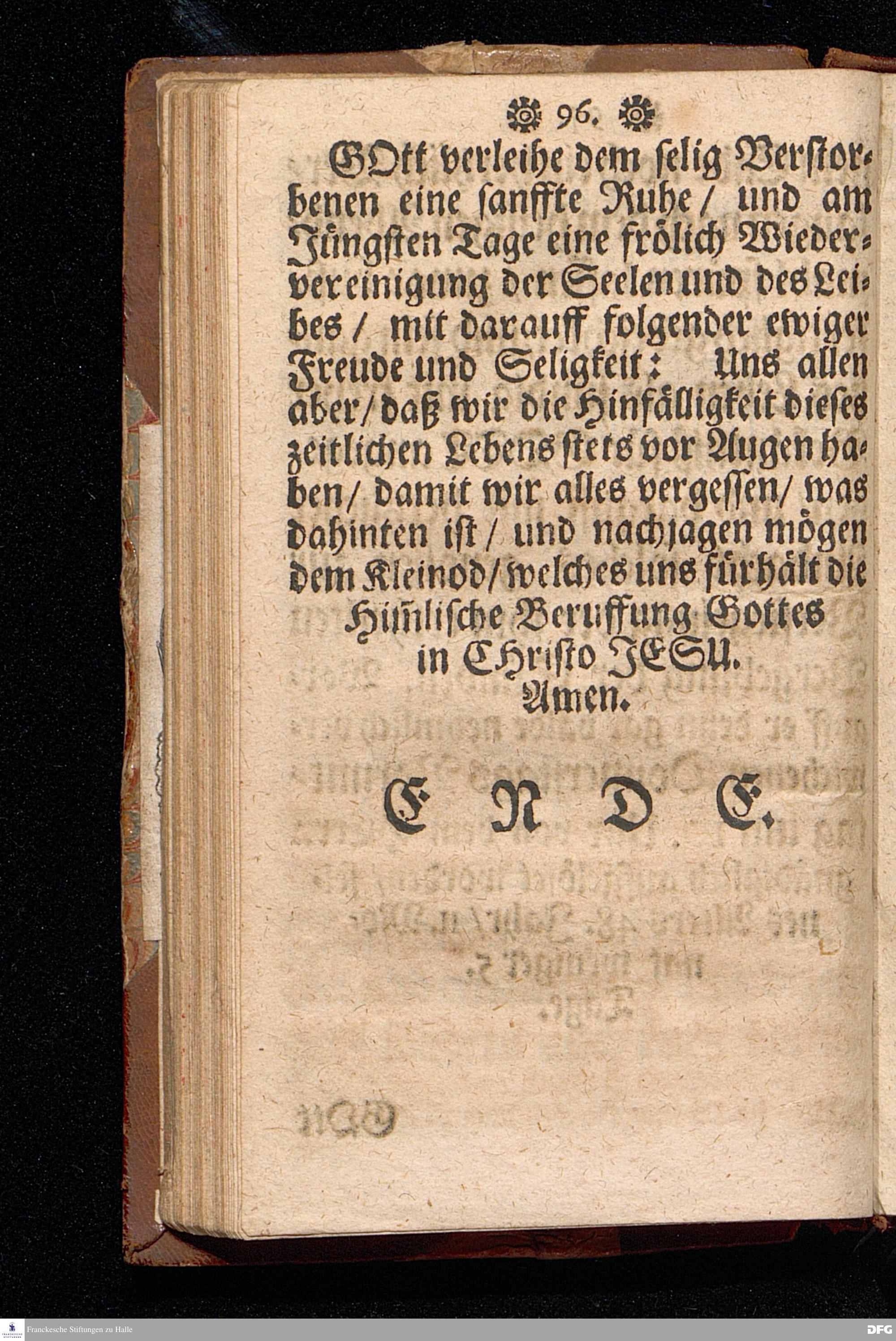 Die Von GOtt befohlne Predigt / Von der Hinfälligkeit des Fleisches / und der Beständigkeit des Wortes Gottes / Bey Beerdigung Des Tit.HERRN Jac.Voglers / Regierenden Richters zu Glaucha an Halle / Aus Esa. XL,6.7.8. fürgetragen den 2.Febr. 1697. von M.Aug.Hermann Francken / Gr.& OO.LL.Prof.Ord. und Past. Zum andern mal gedruckt. Nordhausen / Verlegts Johann Dauderstadt / Buchh.