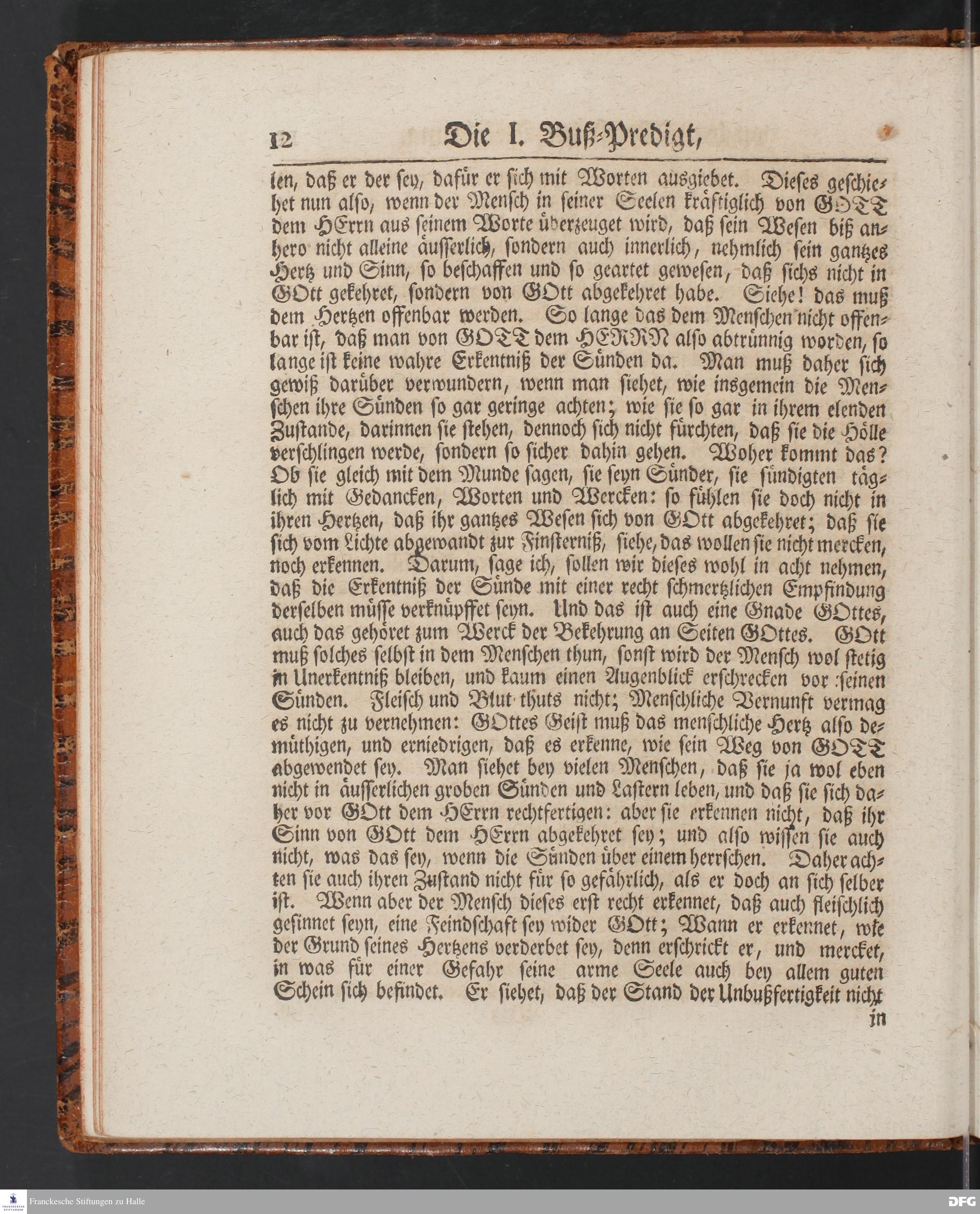 August Hermann Franckens SS.Theol.Prof.Ord.& Past.Vlriciani, Buß=Predigten, Darinnen aus verschiedenen Texten Heil. Schrift deutlich gezeiget wird, Wie nicht nur Unbekehrte zur wahren Busse gelangen, sondern auch die, so bekehret sind, in täglicher Busse und Gottseligkeit leben und wandeln sollen. Erster und Anderer Theil. Fünfte Auflage. Mit Königl. Preuß. und Churfl. Brandenb. Privilegio. HALLE, in Verlegung des Waysenhauses, MDCCXLV.
