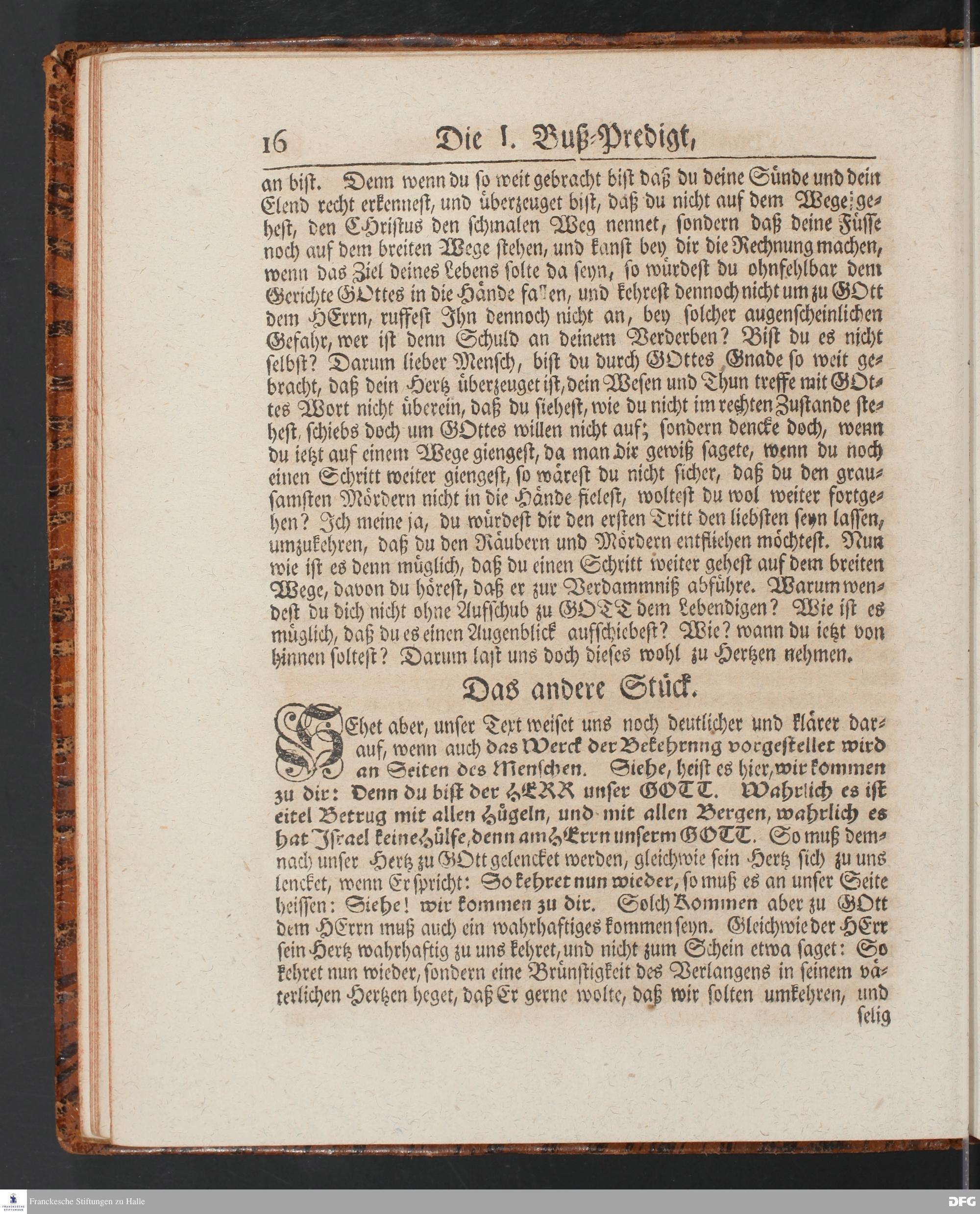 August Hermann Franckens SS.Theol.Prof.Ord.& Past.Vlriciani, Buß=Predigten, Darinnen aus verschiedenen Texten Heil. Schrift deutlich gezeiget wird, Wie nicht nur Unbekehrte zur wahren Busse gelangen, sondern auch die, so bekehret sind, in täglicher Busse und Gottseligkeit leben und wandeln sollen. Erster und Anderer Theil. Fünfte Auflage. Mit Königl. Preuß. und Churfl. Brandenb. Privilegio. HALLE, in Verlegung des Waysenhauses, MDCCXLV.