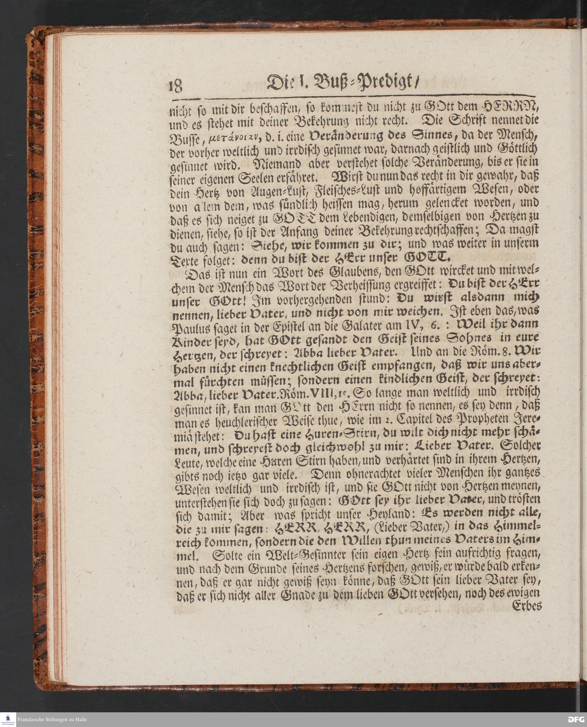 August Hermann Franckens SS.Theol.Prof.Ord.& Past.Vlriciani, Buß=Predigten, Darinnen aus verschiedenen Texten Heil. Schrift deutlich gezeiget wird, Wie nicht nur Unbekehrte zur wahren Busse gelangen, sondern auch die, so bekehret sind, in täglicher Busse und Gottseligkeit leben und wandeln sollen. Erster und Anderer Theil. Fünfte Auflage. Mit Königl. Preuß. und Churfl. Brandenb. Privilegio. HALLE, in Verlegung des Waysenhauses, MDCCXLV.
