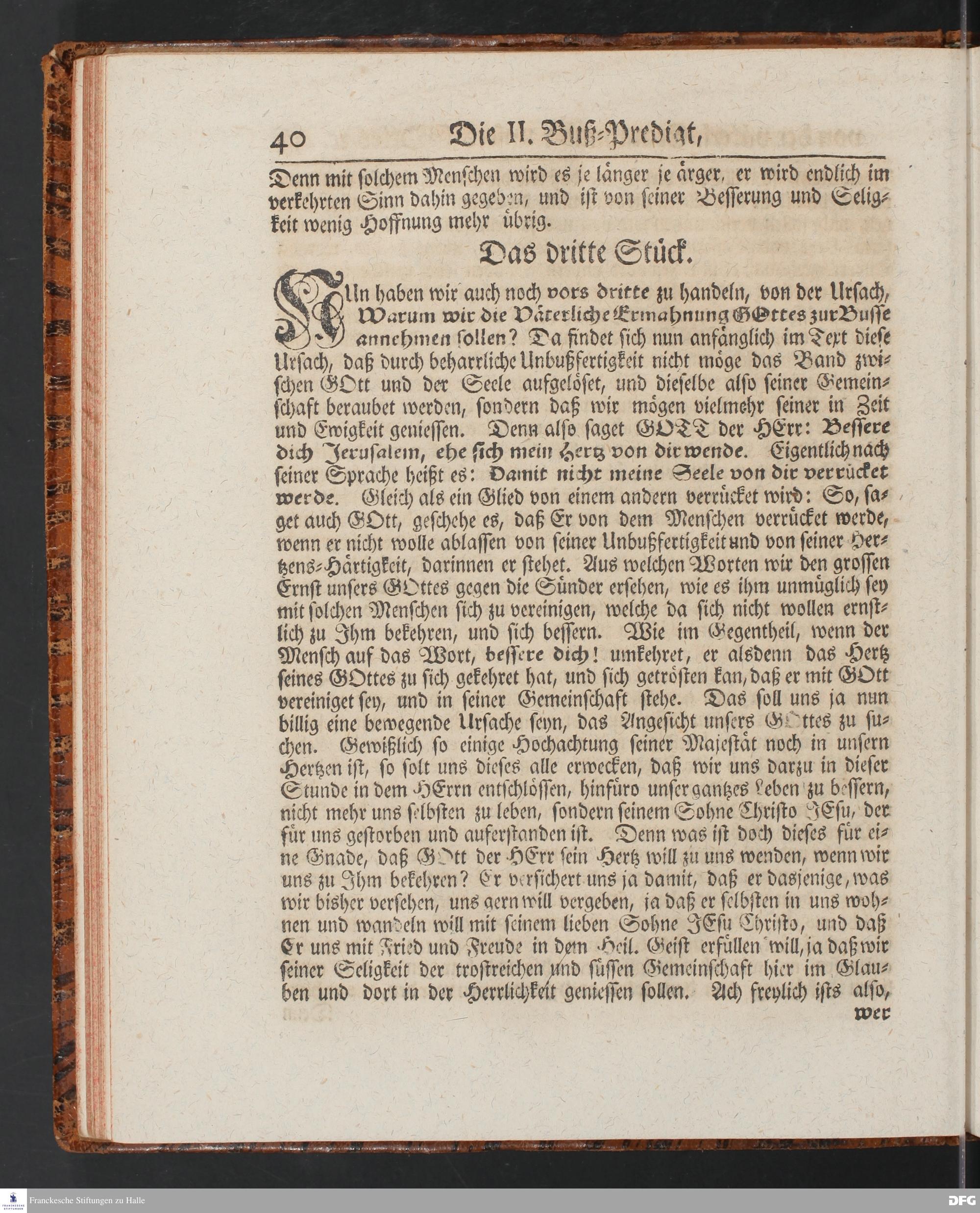 August Hermann Franckens SS.Theol.Prof.Ord.& Past.Vlriciani, Buß=Predigten, Darinnen aus verschiedenen Texten Heil. Schrift deutlich gezeiget wird, Wie nicht nur Unbekehrte zur wahren Busse gelangen, sondern auch die, so bekehret sind, in täglicher Busse und Gottseligkeit leben und wandeln sollen. Erster und Anderer Theil. Fünfte Auflage. Mit Königl. Preuß. und Churfl. Brandenb. Privilegio. HALLE, in Verlegung des Waysenhauses, MDCCXLV.