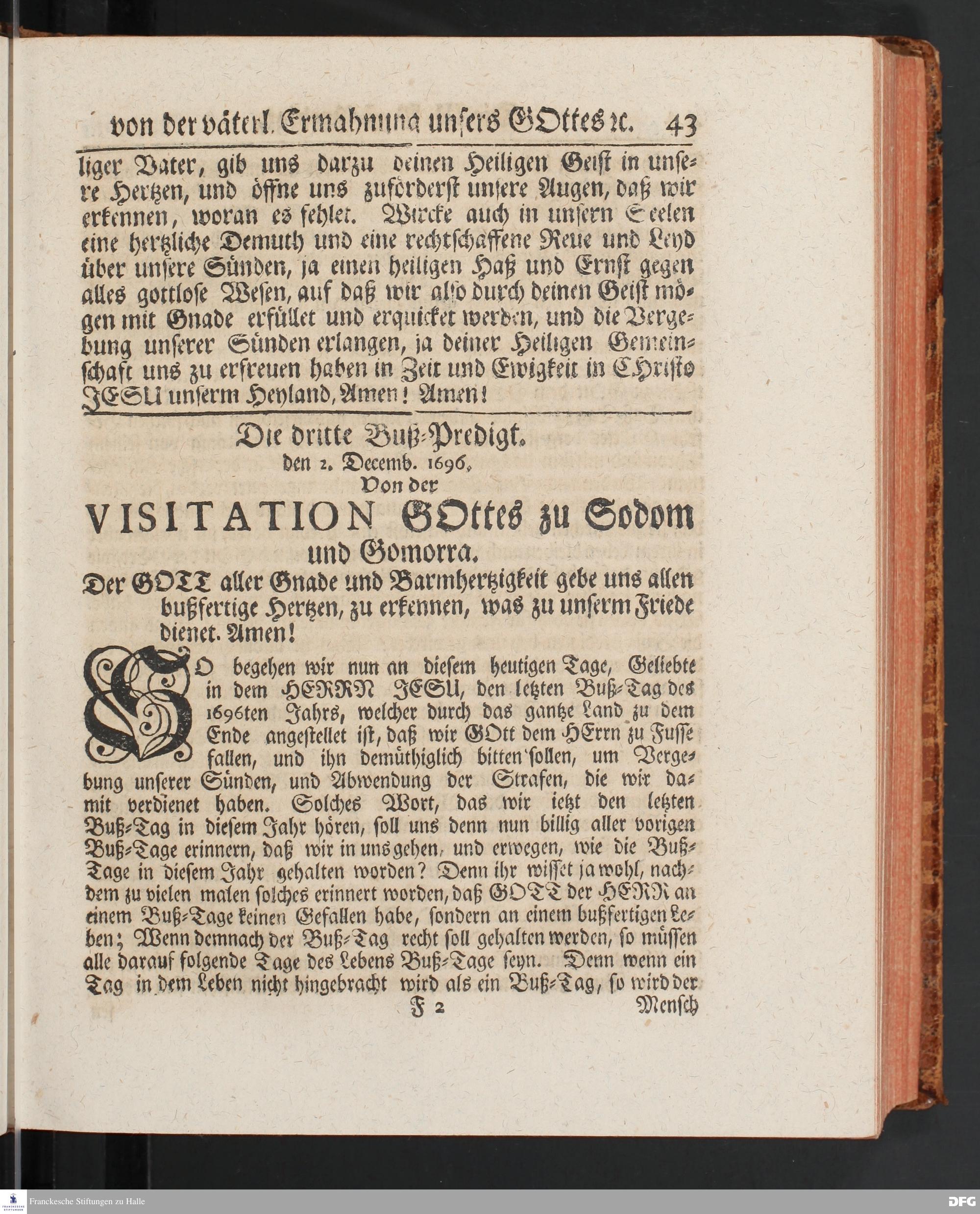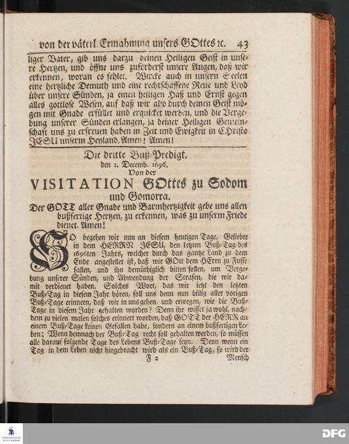 August Hermann Franckens SS.Theol.Prof.Ord.& Past.Vlriciani, Buß=Predigten, Darinnen aus verschiedenen Texten Heil. Schrift deutlich gezeiget wird, Wie nicht nur Unbekehrte zur wahren Busse gelangen, sondern auch die, so bekehret sind, in täglicher Busse und Gottseligkeit leben und wandeln sollen. Erster und Anderer Theil. Fünfte Auflage. Mit Königl. Preuß. und Churfl. Brandenb. Privilegio. HALLE, in Verlegung des Waysenhauses, MDCCXLV.
