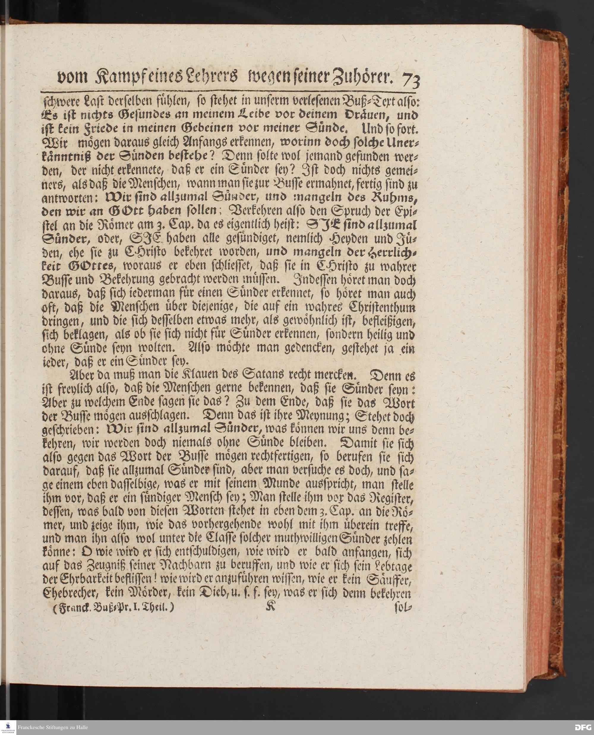August Hermann Franckens SS.Theol.Prof.Ord.& Past.Vlriciani, Buß=Predigten, Darinnen aus verschiedenen Texten Heil. Schrift deutlich gezeiget wird, Wie nicht nur Unbekehrte zur wahren Busse gelangen, sondern auch die, so bekehret sind, in täglicher Busse und Gottseligkeit leben und wandeln sollen. Erster und Anderer Theil. Fünfte Auflage. Mit Königl. Preuß. und Churfl. Brandenb. Privilegio. HALLE, in Verlegung des Waysenhauses, MDCCXLV.