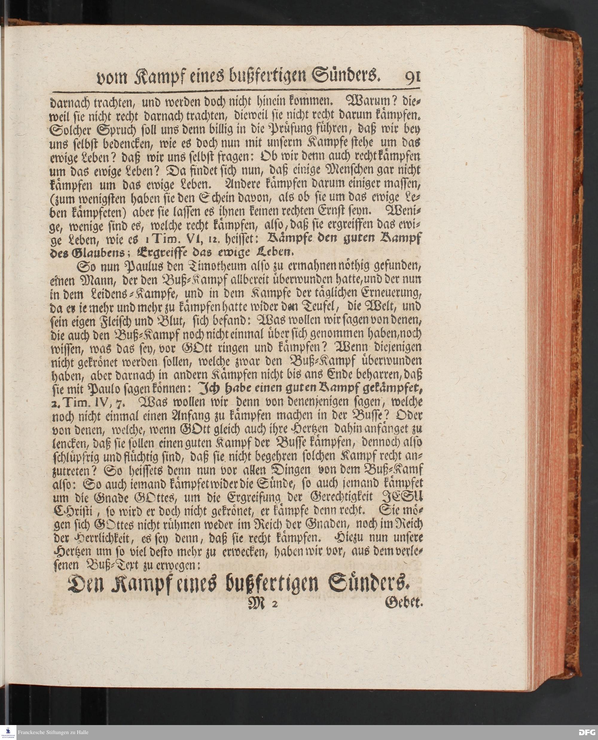 August Hermann Franckens SS.Theol.Prof.Ord.& Past.Vlriciani, Buß=Predigten, Darinnen aus verschiedenen Texten Heil. Schrift deutlich gezeiget wird, Wie nicht nur Unbekehrte zur wahren Busse gelangen, sondern auch die, so bekehret sind, in täglicher Busse und Gottseligkeit leben und wandeln sollen. Erster und Anderer Theil. Fünfte Auflage. Mit Königl. Preuß. und Churfl. Brandenb. Privilegio. HALLE, in Verlegung des Waysenhauses, MDCCXLV.