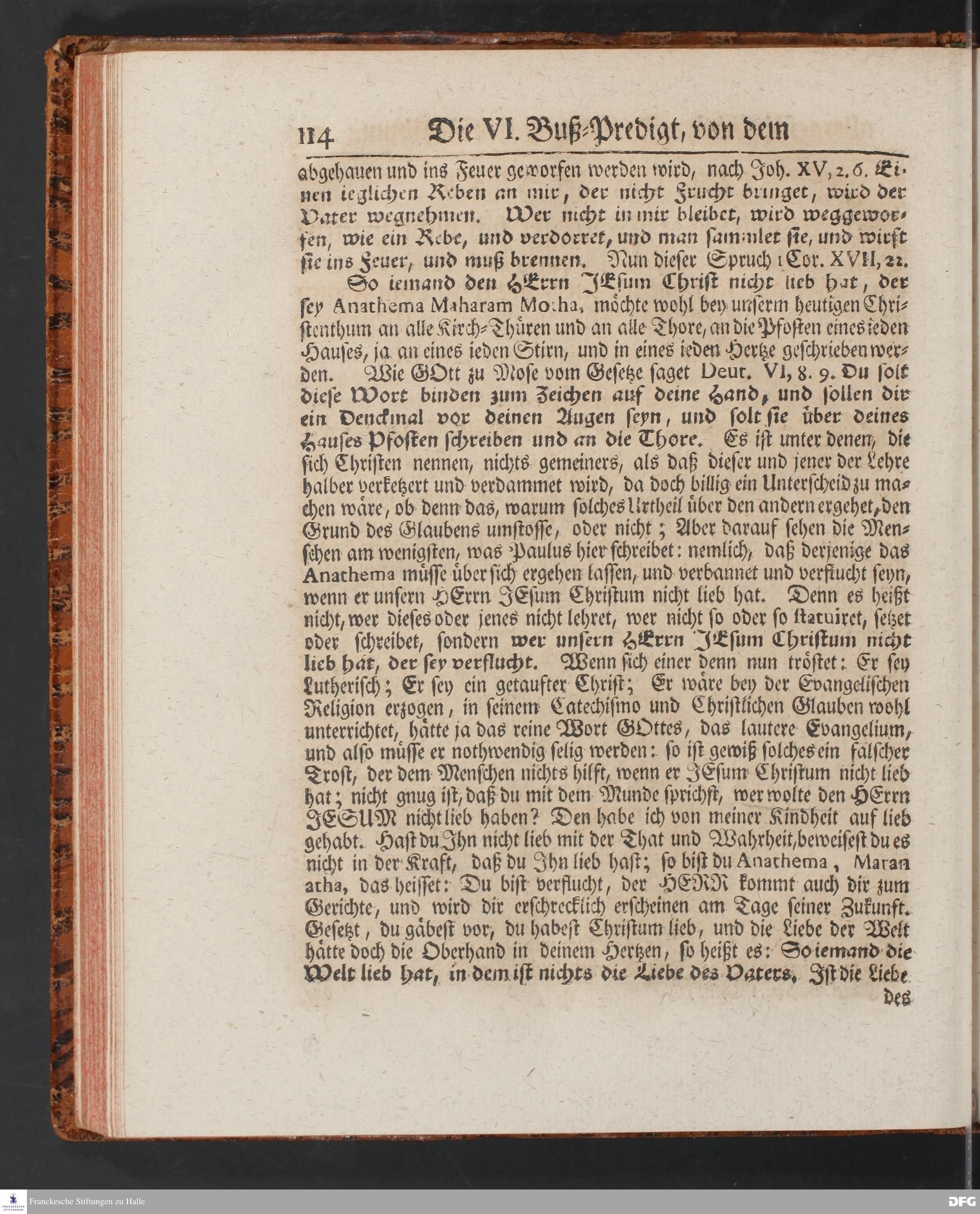 August Hermann Franckens SS.Theol.Prof.Ord.& Past.Vlriciani, Buß=Predigten, Darinnen aus verschiedenen Texten Heil. Schrift deutlich gezeiget wird, Wie nicht nur Unbekehrte zur wahren Busse gelangen, sondern auch die, so bekehret sind, in täglicher Busse und Gottseligkeit leben und wandeln sollen. Erster und Anderer Theil. Fünfte Auflage. Mit Königl. Preuß. und Churfl. Brandenb. Privilegio. HALLE, in Verlegung des Waysenhauses, MDCCXLV.