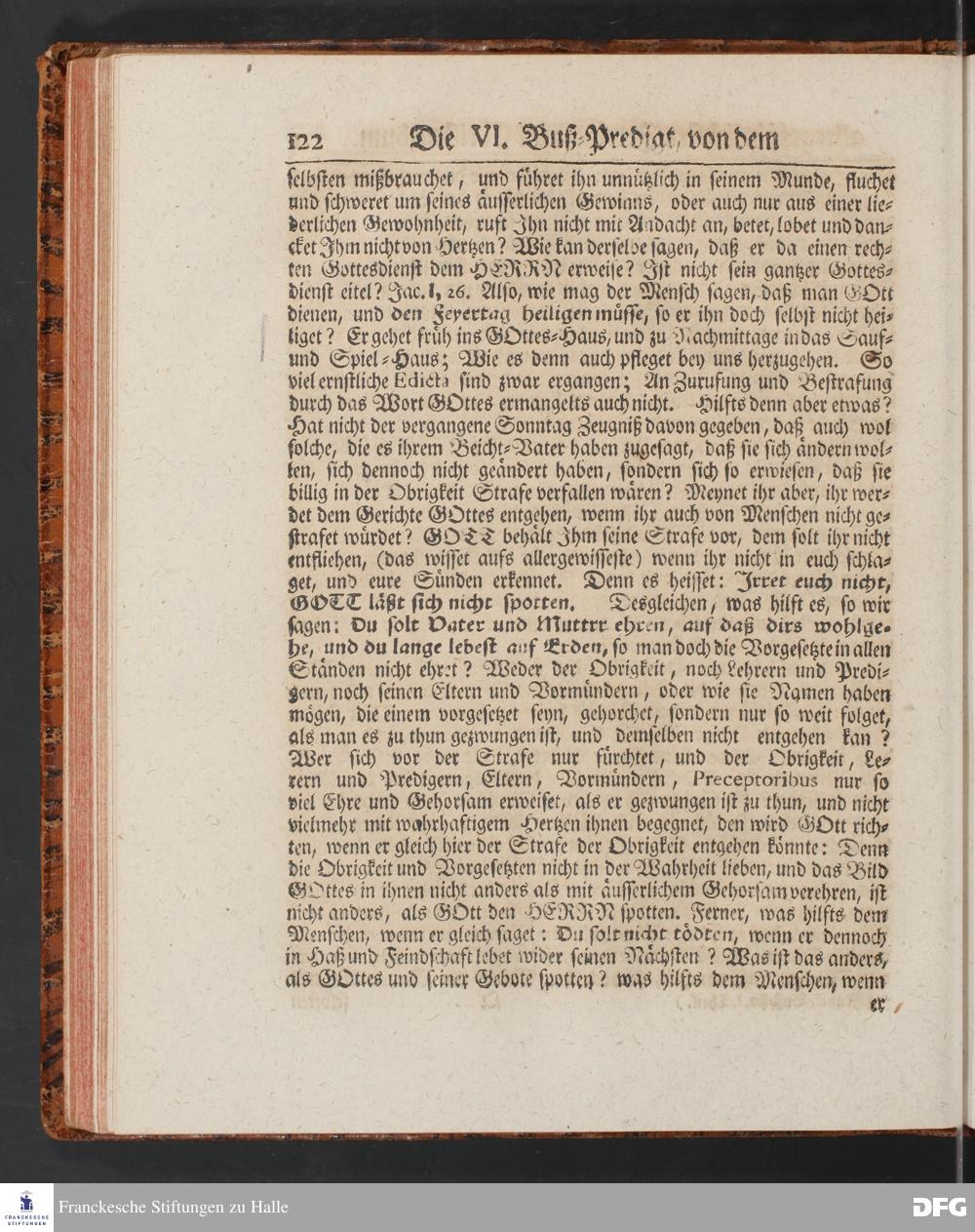 August Hermann Franckens SS.Theol.Prof.Ord.& Past.Vlriciani, Buß=Predigten, Darinnen aus verschiedenen Texten Heil. Schrift deutlich gezeiget wird, Wie nicht nur Unbekehrte zur wahren Busse gelangen, sondern auch die, so bekehret sind, in täglicher Busse und Gottseligkeit leben und wandeln sollen. Erster und Anderer Theil. Fünfte Auflage. Mit Königl. Preuß. und Churfl. Brandenb. Privilegio. HALLE, in Verlegung des Waysenhauses, MDCCXLV.