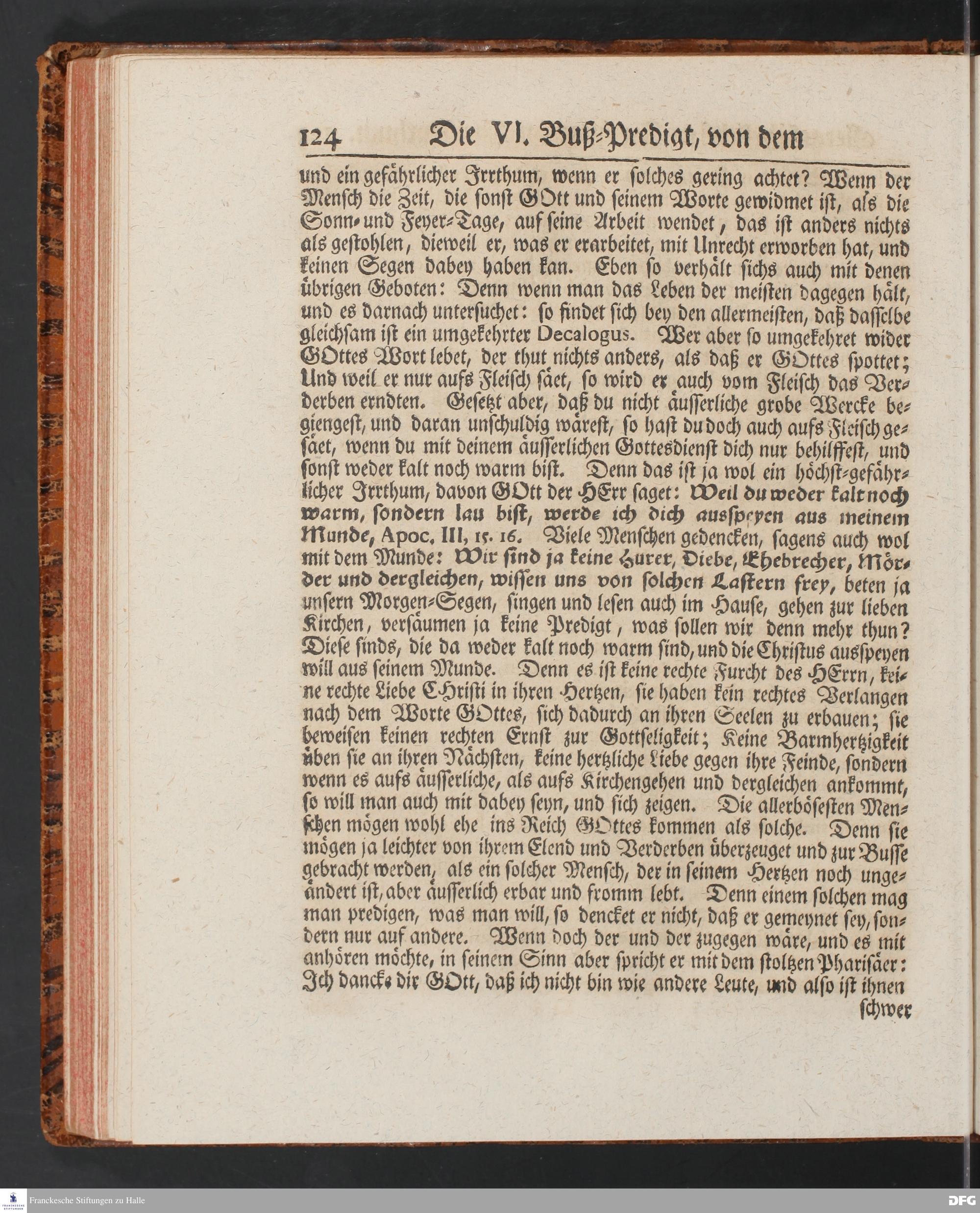 August Hermann Franckens SS.Theol.Prof.Ord.& Past.Vlriciani, Buß=Predigten, Darinnen aus verschiedenen Texten Heil. Schrift deutlich gezeiget wird, Wie nicht nur Unbekehrte zur wahren Busse gelangen, sondern auch die, so bekehret sind, in täglicher Busse und Gottseligkeit leben und wandeln sollen. Erster und Anderer Theil. Fünfte Auflage. Mit Königl. Preuß. und Churfl. Brandenb. Privilegio. HALLE, in Verlegung des Waysenhauses, MDCCXLV.