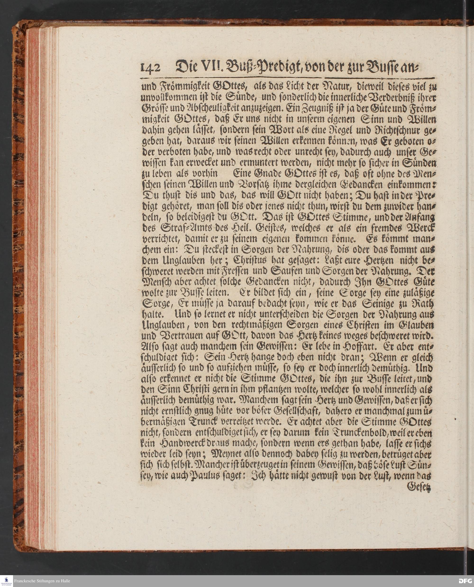 August Hermann Franckens SS.Theol.Prof.Ord.& Past.Vlriciani, Buß=Predigten, Darinnen aus verschiedenen Texten Heil. Schrift deutlich gezeiget wird, Wie nicht nur Unbekehrte zur wahren Busse gelangen, sondern auch die, so bekehret sind, in täglicher Busse und Gottseligkeit leben und wandeln sollen. Erster und Anderer Theil. Fünfte Auflage. Mit Königl. Preuß. und Churfl. Brandenb. Privilegio. HALLE, in Verlegung des Waysenhauses, MDCCXLV.