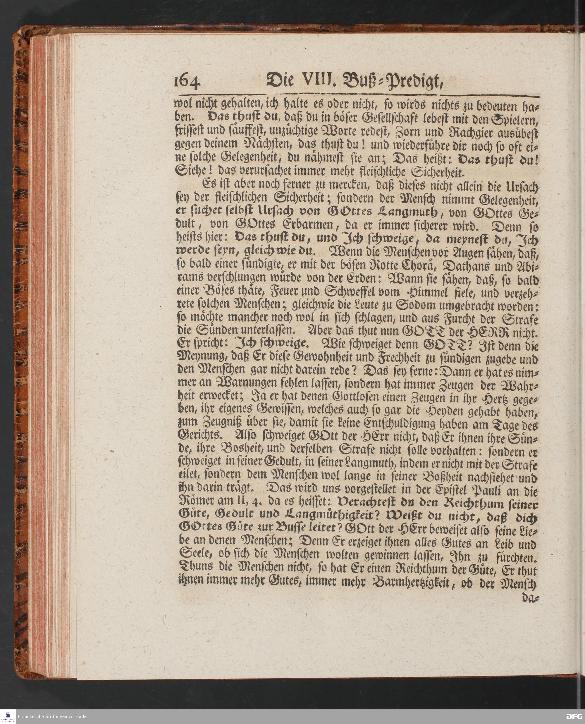August Hermann Franckens SS.Theol.Prof.Ord.& Past.Vlriciani, Buß=Predigten, Darinnen aus verschiedenen Texten Heil. Schrift deutlich gezeiget wird, Wie nicht nur Unbekehrte zur wahren Busse gelangen, sondern auch die, so bekehret sind, in täglicher Busse und Gottseligkeit leben und wandeln sollen. Erster und Anderer Theil. Fünfte Auflage. Mit Königl. Preuß. und Churfl. Brandenb. Privilegio. HALLE, in Verlegung des Waysenhauses, MDCCXLV.