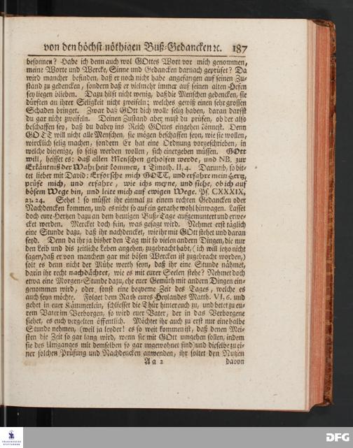 August Hermann Franckens SS.Theol.Prof.Ord.& Past.Vlriciani, Buß=Predigten, Darinnen aus verschiedenen Texten Heil. Schrift deutlich gezeiget wird, Wie nicht nur Unbekehrte zur wahren Busse gelangen, sondern auch die, so bekehret sind, in täglicher Busse und Gottseligkeit leben und wandeln sollen. Erster und Anderer Theil. Fünfte Auflage. Mit Königl. Preuß. und Churfl. Brandenb. Privilegio. HALLE, in Verlegung des Waysenhauses, MDCCXLV.