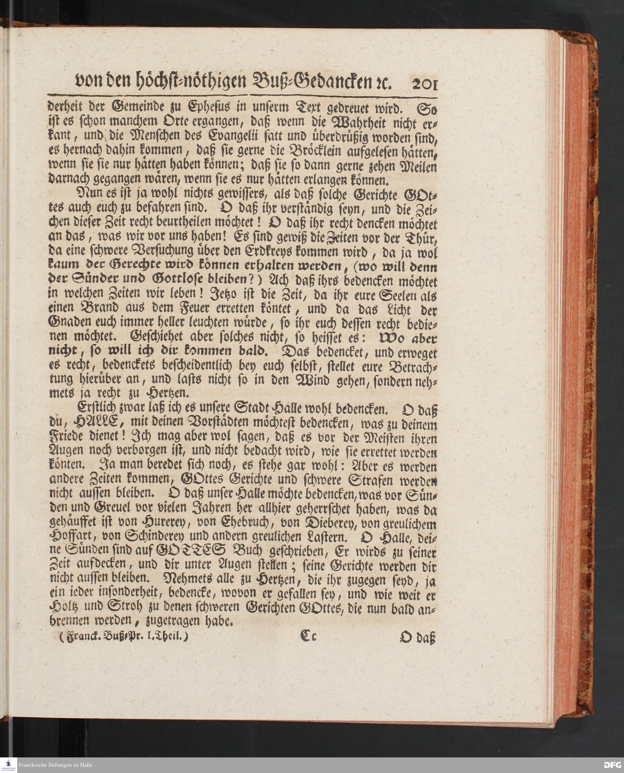 August Hermann Franckens SS.Theol.Prof.Ord.& Past.Vlriciani, Buß=Predigten, Darinnen aus verschiedenen Texten Heil. Schrift deutlich gezeiget wird, Wie nicht nur Unbekehrte zur wahren Busse gelangen, sondern auch die, so bekehret sind, in täglicher Busse und Gottseligkeit leben und wandeln sollen. Erster und Anderer Theil. Fünfte Auflage. Mit Königl. Preuß. und Churfl. Brandenb. Privilegio. HALLE, in Verlegung des Waysenhauses, MDCCXLV.