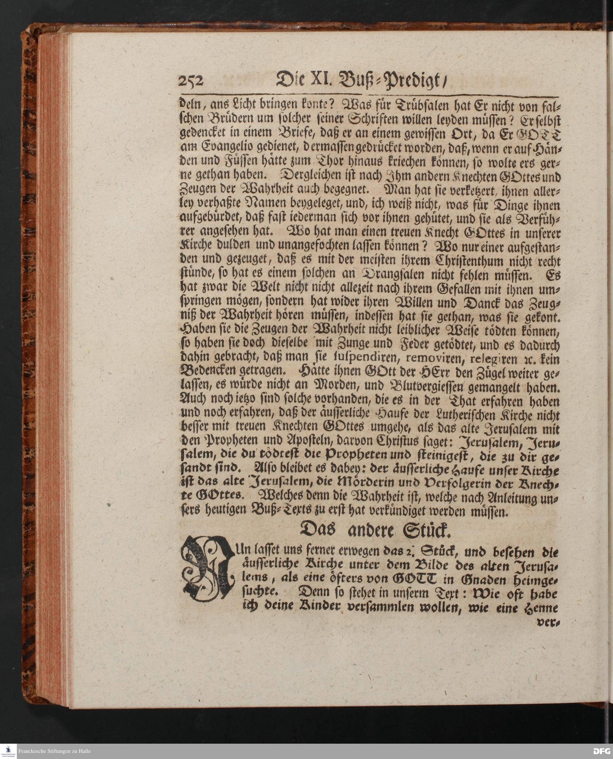August Hermann Franckens SS.Theol.Prof.Ord.& Past.Vlriciani, Buß=Predigten, Darinnen aus verschiedenen Texten Heil. Schrift deutlich gezeiget wird, Wie nicht nur Unbekehrte zur wahren Busse gelangen, sondern auch die, so bekehret sind, in täglicher Busse und Gottseligkeit leben und wandeln sollen. Erster und Anderer Theil. Fünfte Auflage. Mit Königl. Preuß. und Churfl. Brandenb. Privilegio. HALLE, in Verlegung des Waysenhauses, MDCCXLV.