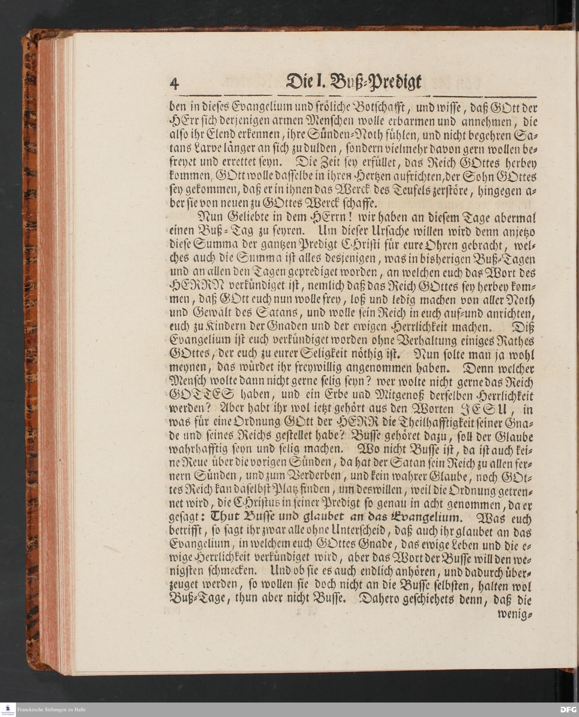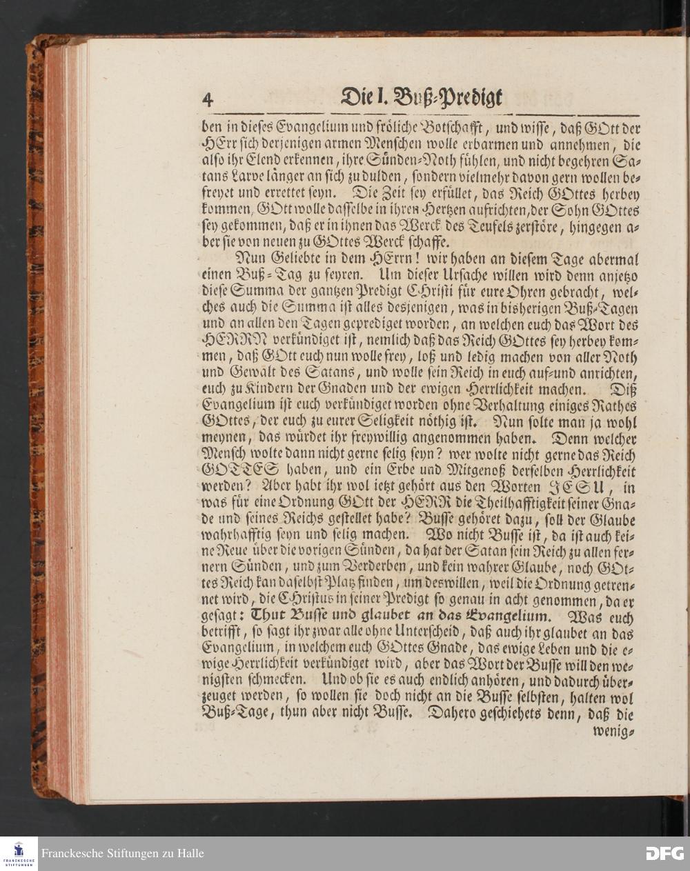 August Hermann Franckens SS.Theol.Prof.Ord.& Past.Vlriciani, Buß=Predigten, Darinnen aus verschiedenen Texten Heil. Schrift deutlich gezeiget wird, Wie nicht nur Unbekehrte zur wahren Busse gelangen, sondern auch die, so bekehret sind, in täglicher Busse und Gottseligkeit leben und wandeln sollen. Erster und Anderer Theil. Fünfte Auflage. Mit Königl. Preuß. und Churfl. Brandenb. Privilegio. HALLE, in Verlegung des Waysenhauses, MDCCXLV.