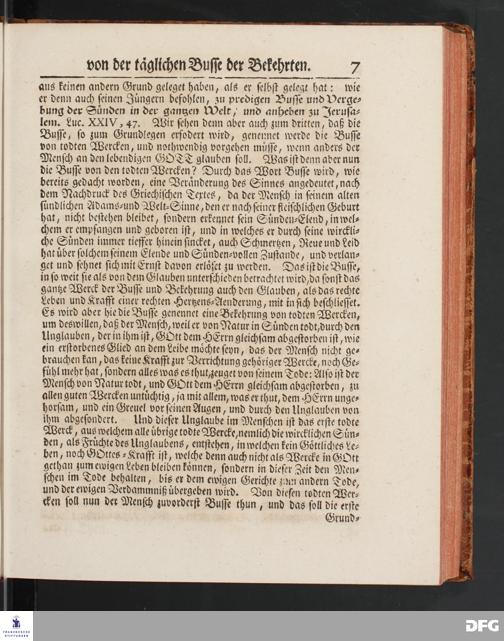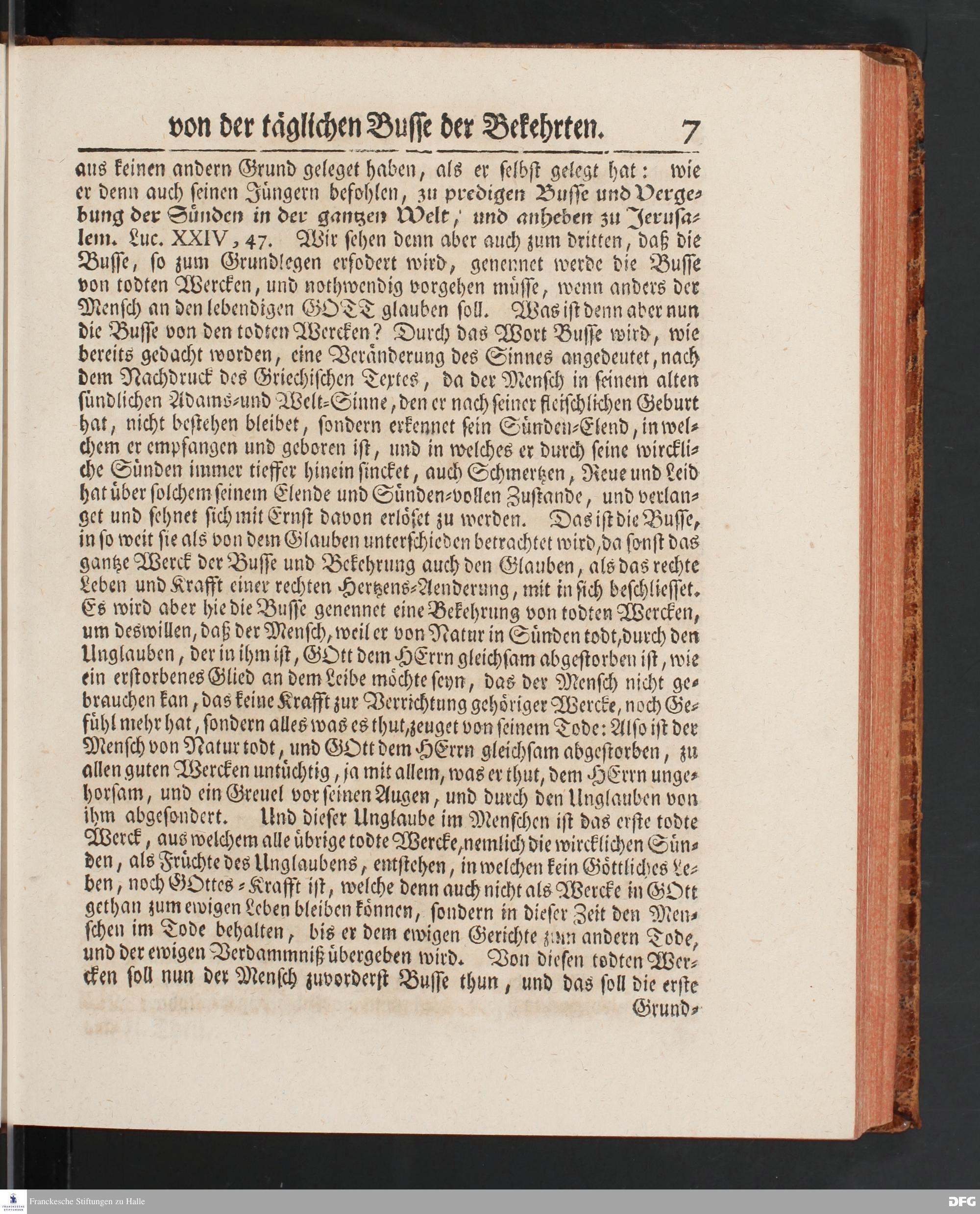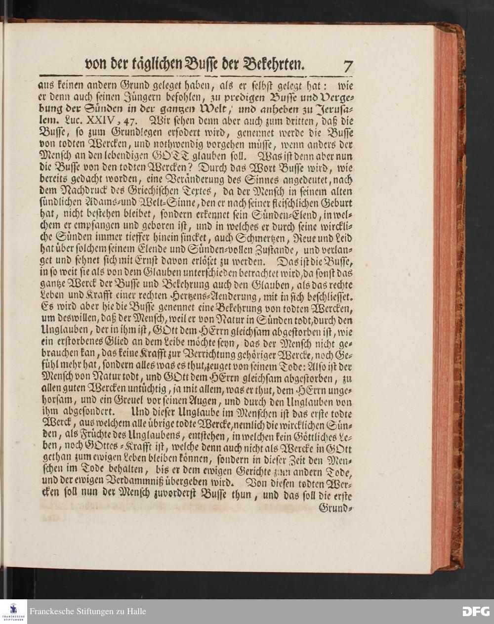 August Hermann Franckens SS.Theol.Prof.Ord.& Past.Vlriciani, Buß=Predigten, Darinnen aus verschiedenen Texten Heil. Schrift deutlich gezeiget wird, Wie nicht nur Unbekehrte zur wahren Busse gelangen, sondern auch die, so bekehret sind, in täglicher Busse und Gottseligkeit leben und wandeln sollen. Erster und Anderer Theil. Fünfte Auflage. Mit Königl. Preuß. und Churfl. Brandenb. Privilegio. HALLE, in Verlegung des Waysenhauses, MDCCXLV.