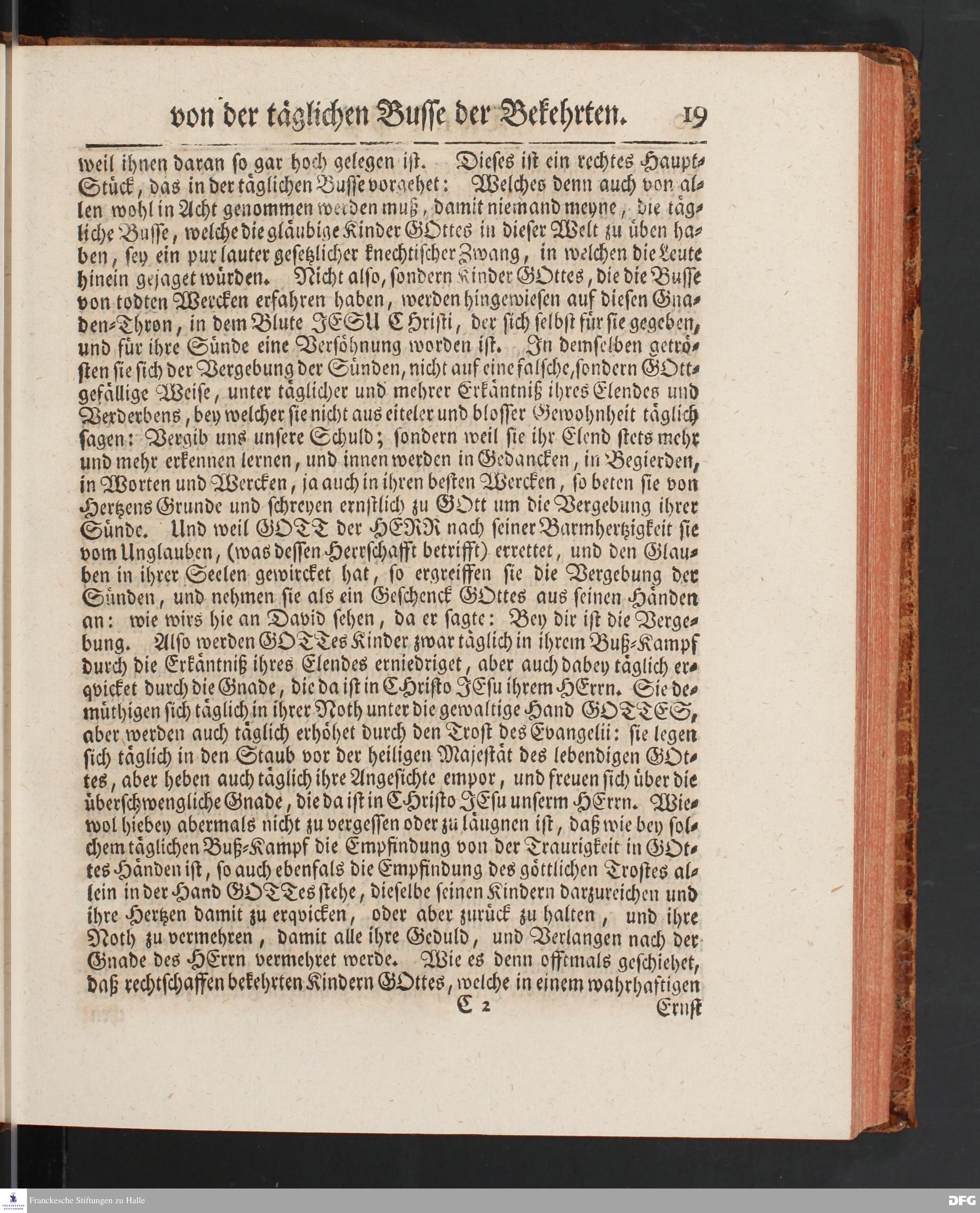 August Hermann Franckens SS.Theol.Prof.Ord.& Past.Vlriciani, Buß=Predigten, Darinnen aus verschiedenen Texten Heil. Schrift deutlich gezeiget wird, Wie nicht nur Unbekehrte zur wahren Busse gelangen, sondern auch die, so bekehret sind, in täglicher Busse und Gottseligkeit leben und wandeln sollen. Erster und Anderer Theil. Fünfte Auflage. Mit Königl. Preuß. und Churfl. Brandenb. Privilegio. HALLE, in Verlegung des Waysenhauses, MDCCXLV.