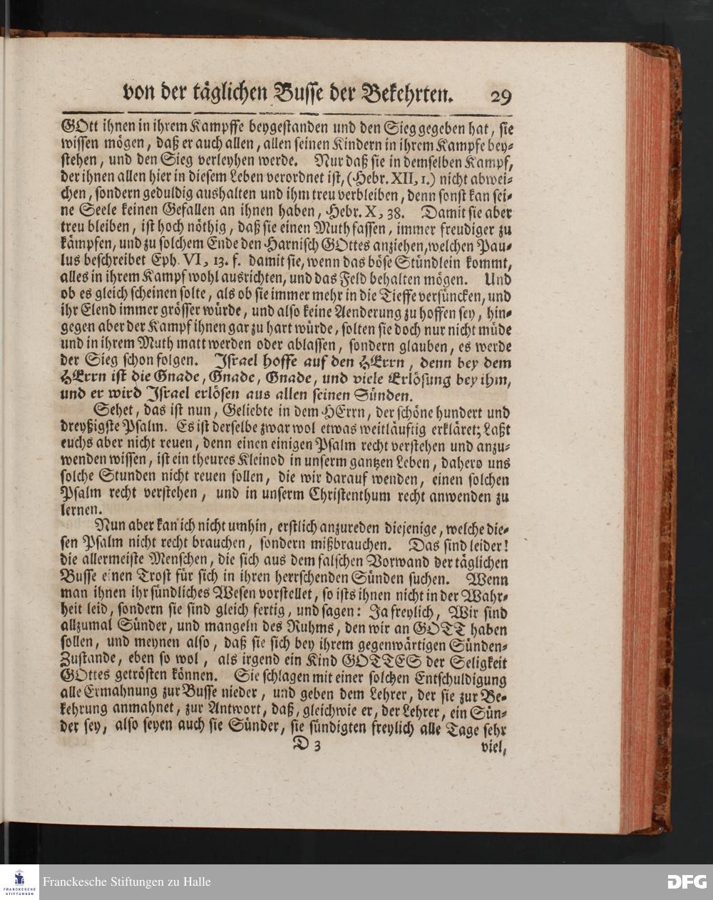 August Hermann Franckens SS.Theol.Prof.Ord.& Past.Vlriciani, Buß=Predigten, Darinnen aus verschiedenen Texten Heil. Schrift deutlich gezeiget wird, Wie nicht nur Unbekehrte zur wahren Busse gelangen, sondern auch die, so bekehret sind, in täglicher Busse und Gottseligkeit leben und wandeln sollen. Erster und Anderer Theil. Fünfte Auflage. Mit Königl. Preuß. und Churfl. Brandenb. Privilegio. HALLE, in Verlegung des Waysenhauses, MDCCXLV.
