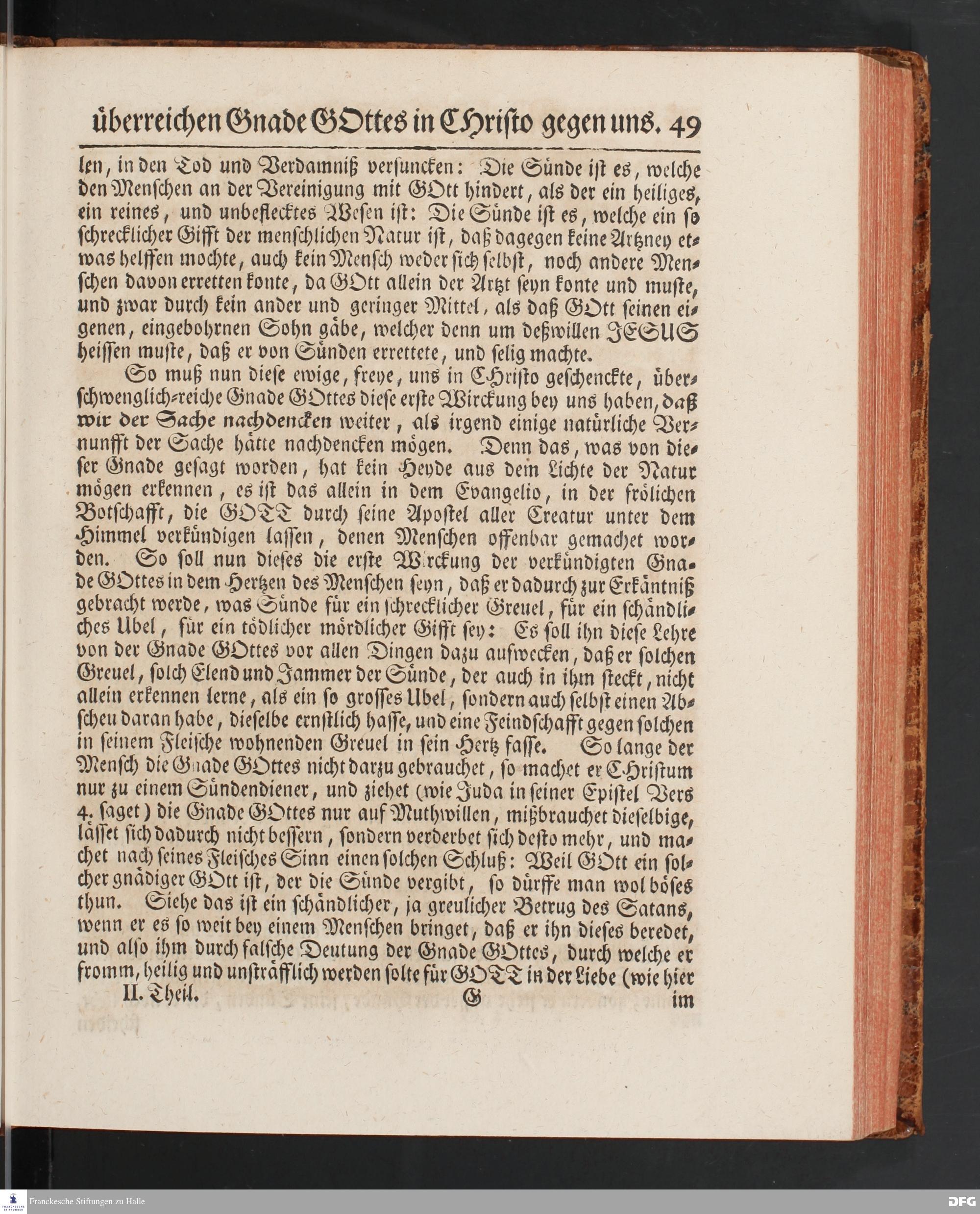 August Hermann Franckens SS.Theol.Prof.Ord.& Past.Vlriciani, Buß=Predigten, Darinnen aus verschiedenen Texten Heil. Schrift deutlich gezeiget wird, Wie nicht nur Unbekehrte zur wahren Busse gelangen, sondern auch die, so bekehret sind, in täglicher Busse und Gottseligkeit leben und wandeln sollen. Erster und Anderer Theil. Fünfte Auflage. Mit Königl. Preuß. und Churfl. Brandenb. Privilegio. HALLE, in Verlegung des Waysenhauses, MDCCXLV.