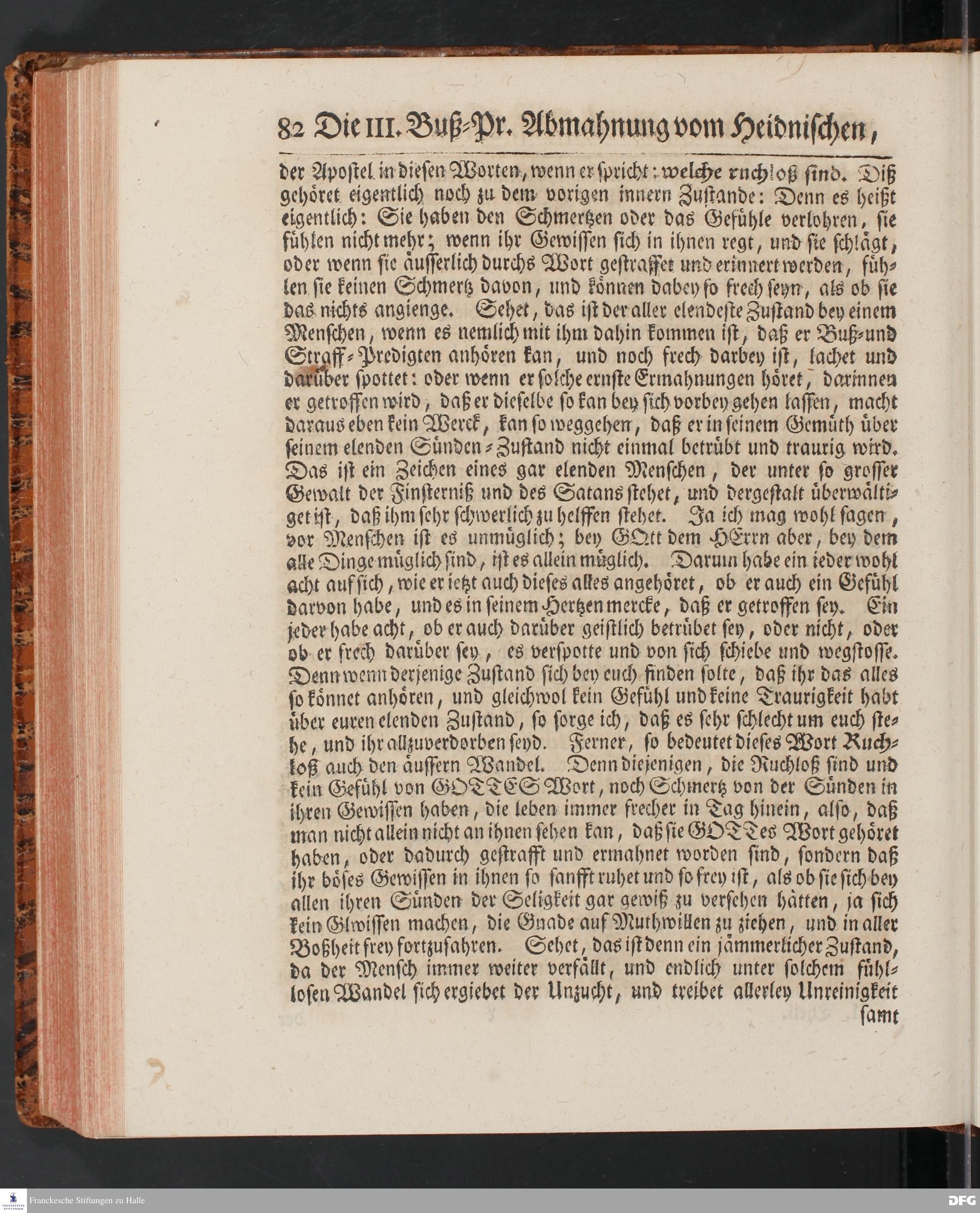 August Hermann Franckens SS.Theol.Prof.Ord.& Past.Vlriciani, Buß=Predigten, Darinnen aus verschiedenen Texten Heil. Schrift deutlich gezeiget wird, Wie nicht nur Unbekehrte zur wahren Busse gelangen, sondern auch die, so bekehret sind, in täglicher Busse und Gottseligkeit leben und wandeln sollen. Erster und Anderer Theil. Fünfte Auflage. Mit Königl. Preuß. und Churfl. Brandenb. Privilegio. HALLE, in Verlegung des Waysenhauses, MDCCXLV.