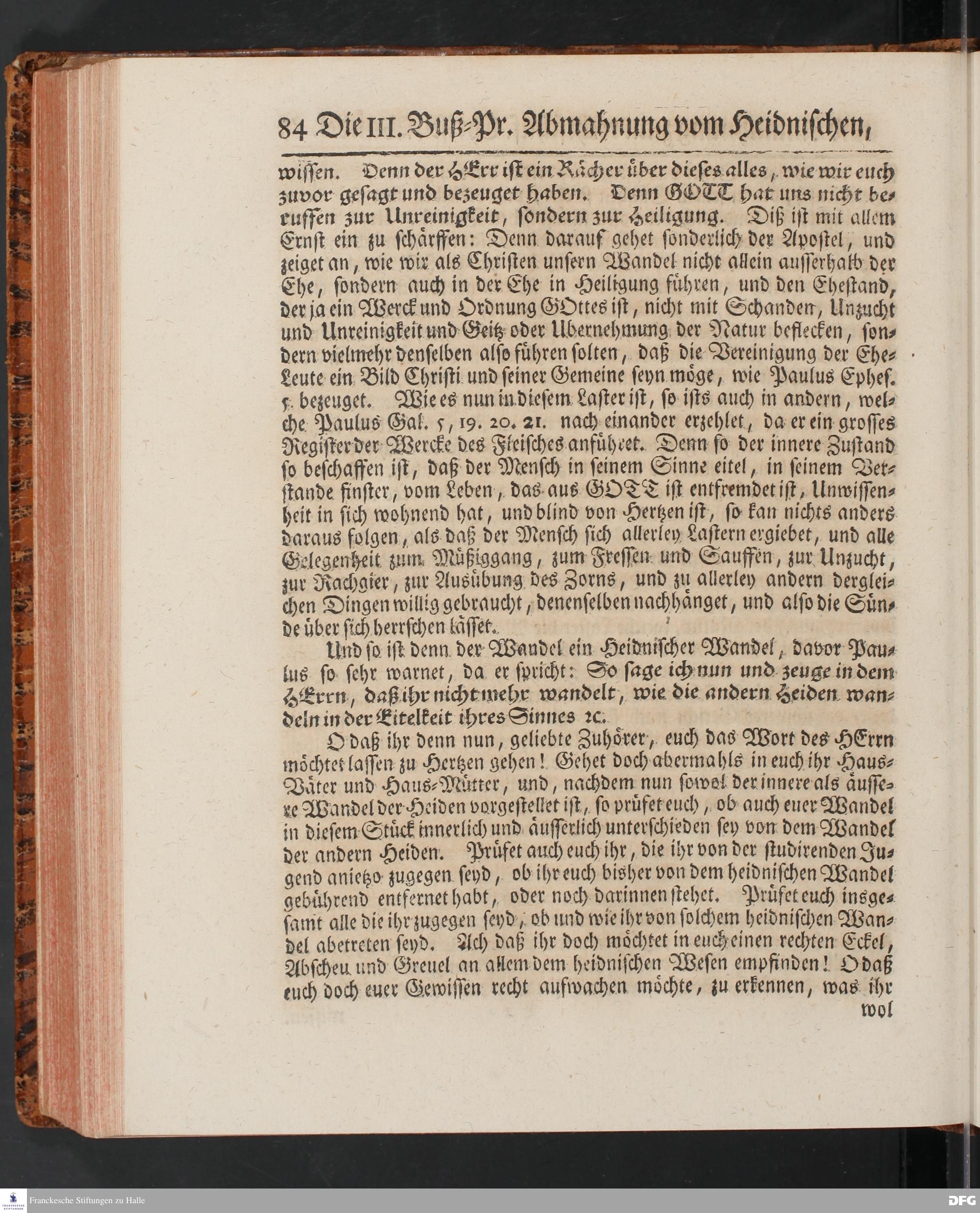 August Hermann Franckens SS.Theol.Prof.Ord.& Past.Vlriciani, Buß=Predigten, Darinnen aus verschiedenen Texten Heil. Schrift deutlich gezeiget wird, Wie nicht nur Unbekehrte zur wahren Busse gelangen, sondern auch die, so bekehret sind, in täglicher Busse und Gottseligkeit leben und wandeln sollen. Erster und Anderer Theil. Fünfte Auflage. Mit Königl. Preuß. und Churfl. Brandenb. Privilegio. HALLE, in Verlegung des Waysenhauses, MDCCXLV.