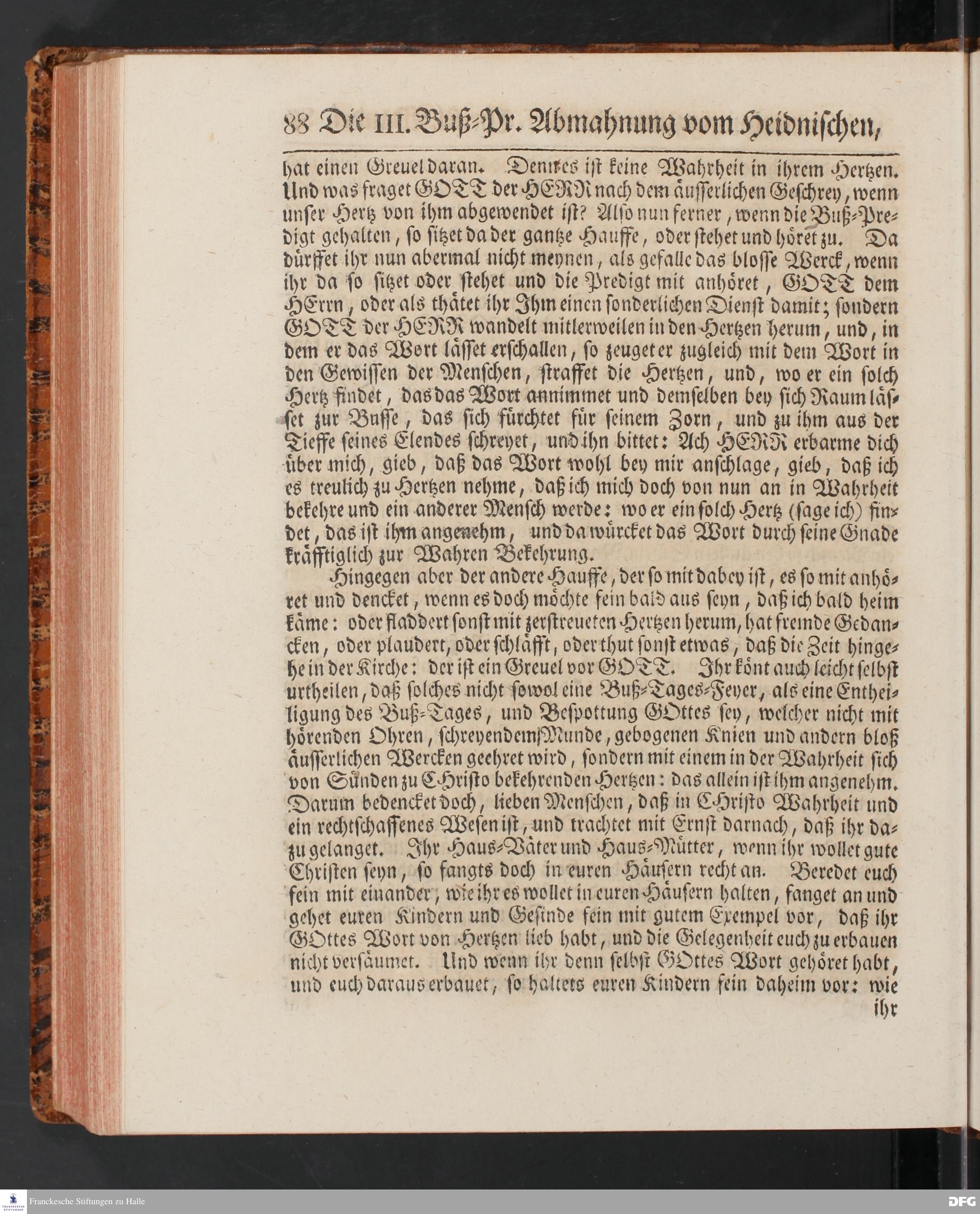 August Hermann Franckens SS.Theol.Prof.Ord.& Past.Vlriciani, Buß=Predigten, Darinnen aus verschiedenen Texten Heil. Schrift deutlich gezeiget wird, Wie nicht nur Unbekehrte zur wahren Busse gelangen, sondern auch die, so bekehret sind, in täglicher Busse und Gottseligkeit leben und wandeln sollen. Erster und Anderer Theil. Fünfte Auflage. Mit Königl. Preuß. und Churfl. Brandenb. Privilegio. HALLE, in Verlegung des Waysenhauses, MDCCXLV.