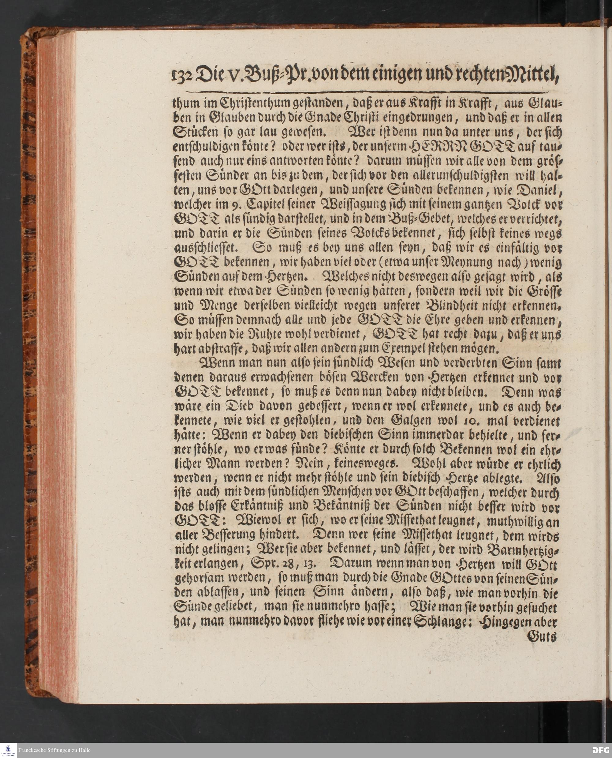 August Hermann Franckens SS.Theol.Prof.Ord.& Past.Vlriciani, Buß=Predigten, Darinnen aus verschiedenen Texten Heil. Schrift deutlich gezeiget wird, Wie nicht nur Unbekehrte zur wahren Busse gelangen, sondern auch die, so bekehret sind, in täglicher Busse und Gottseligkeit leben und wandeln sollen. Erster und Anderer Theil. Fünfte Auflage. Mit Königl. Preuß. und Churfl. Brandenb. Privilegio. HALLE, in Verlegung des Waysenhauses, MDCCXLV.