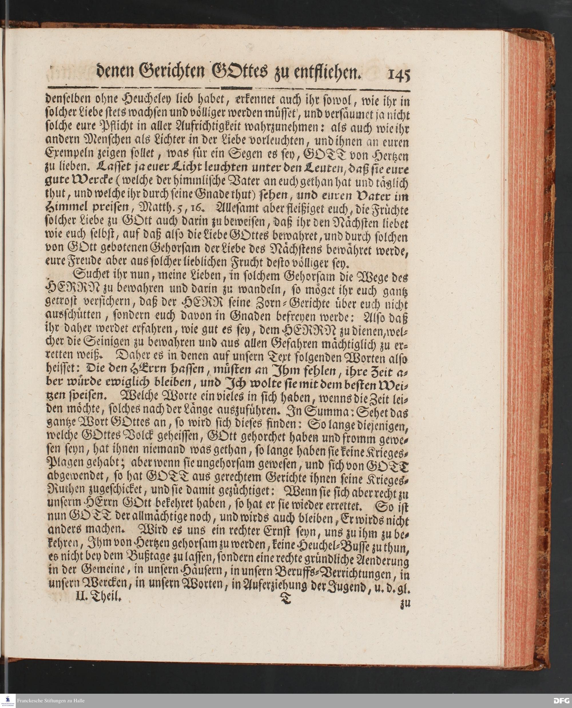 August Hermann Franckens SS.Theol.Prof.Ord.& Past.Vlriciani, Buß=Predigten, Darinnen aus verschiedenen Texten Heil. Schrift deutlich gezeiget wird, Wie nicht nur Unbekehrte zur wahren Busse gelangen, sondern auch die, so bekehret sind, in täglicher Busse und Gottseligkeit leben und wandeln sollen. Erster und Anderer Theil. Fünfte Auflage. Mit Königl. Preuß. und Churfl. Brandenb. Privilegio. HALLE, in Verlegung des Waysenhauses, MDCCXLV.