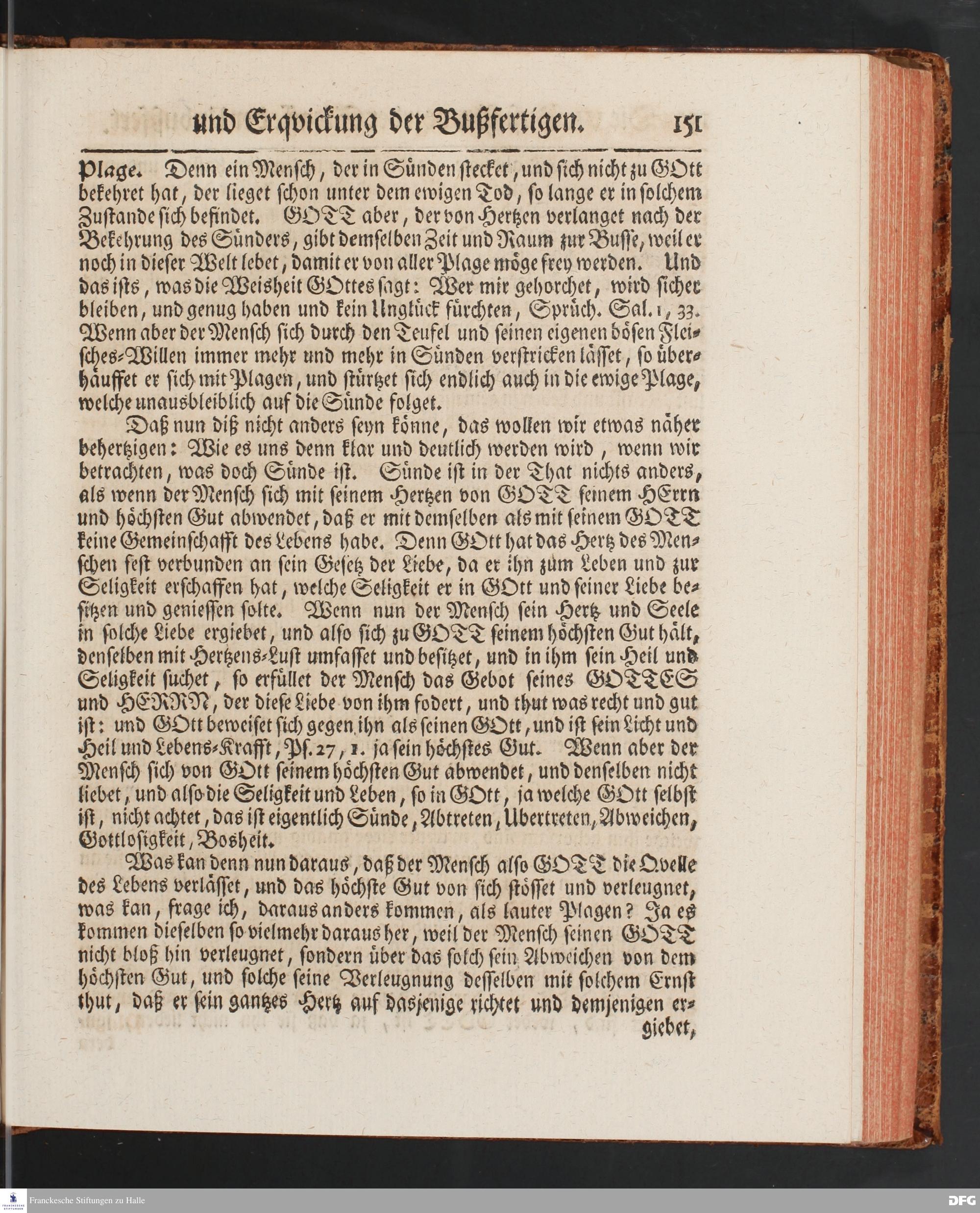 August Hermann Franckens SS.Theol.Prof.Ord.& Past.Vlriciani, Buß=Predigten, Darinnen aus verschiedenen Texten Heil. Schrift deutlich gezeiget wird, Wie nicht nur Unbekehrte zur wahren Busse gelangen, sondern auch die, so bekehret sind, in täglicher Busse und Gottseligkeit leben und wandeln sollen. Erster und Anderer Theil. Fünfte Auflage. Mit Königl. Preuß. und Churfl. Brandenb. Privilegio. HALLE, in Verlegung des Waysenhauses, MDCCXLV.