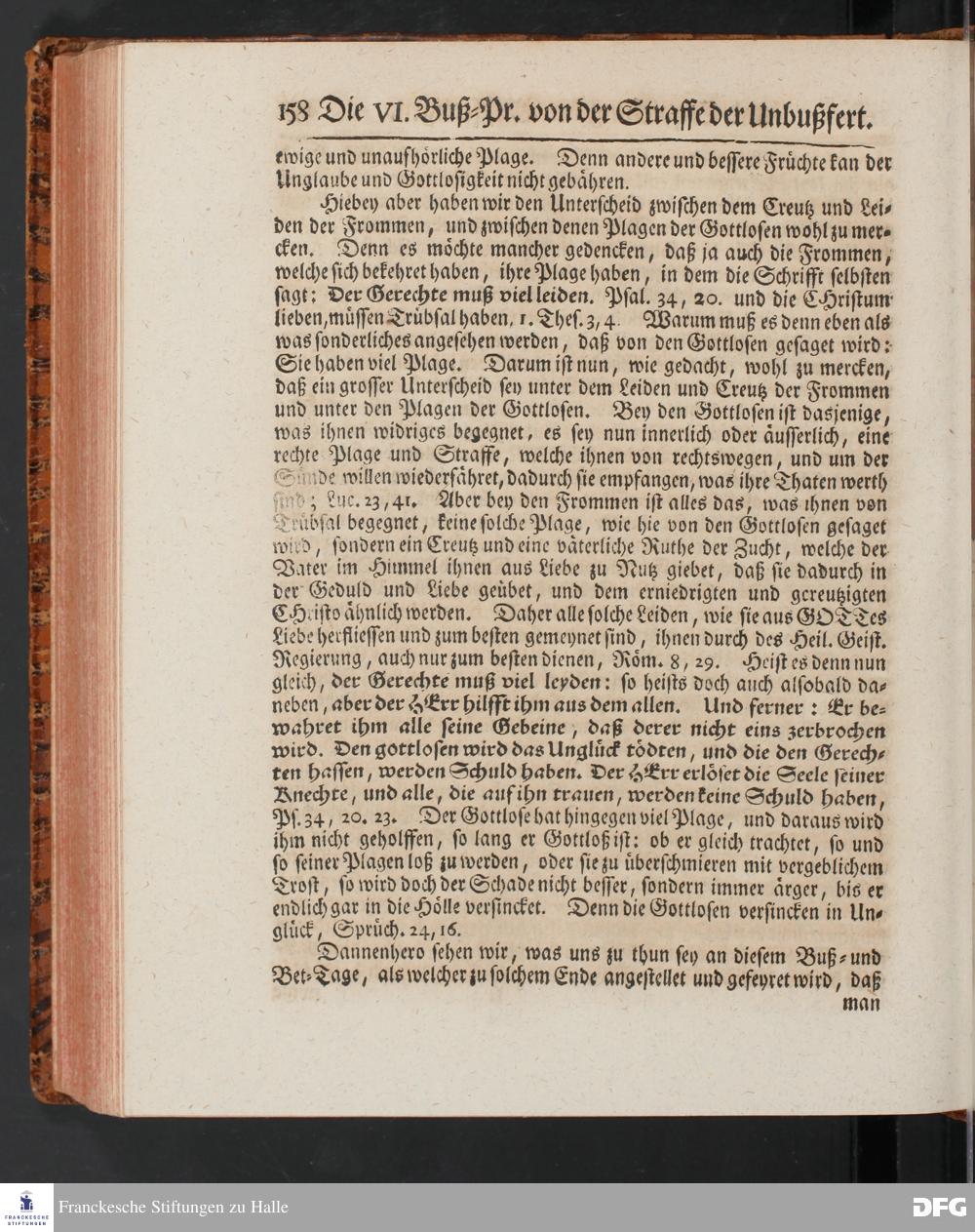 August Hermann Franckens SS.Theol.Prof.Ord.& Past.Vlriciani, Buß=Predigten, Darinnen aus verschiedenen Texten Heil. Schrift deutlich gezeiget wird, Wie nicht nur Unbekehrte zur wahren Busse gelangen, sondern auch die, so bekehret sind, in täglicher Busse und Gottseligkeit leben und wandeln sollen. Erster und Anderer Theil. Fünfte Auflage. Mit Königl. Preuß. und Churfl. Brandenb. Privilegio. HALLE, in Verlegung des Waysenhauses, MDCCXLV.