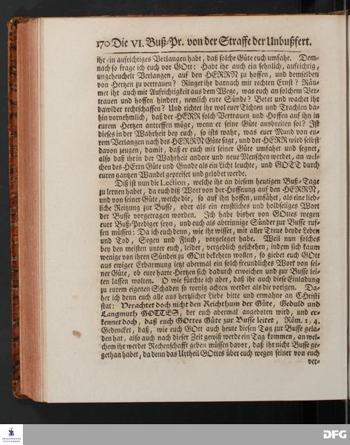 August Hermann Franckens SS.Theol.Prof.Ord.& Past.Vlriciani, Buß=Predigten, Darinnen aus verschiedenen Texten Heil. Schrift deutlich gezeiget wird, Wie nicht nur Unbekehrte zur wahren Busse gelangen, sondern auch die, so bekehret sind, in täglicher Busse und Gottseligkeit leben und wandeln sollen. Erster und Anderer Theil. Fünfte Auflage. Mit Königl. Preuß. und Churfl. Brandenb. Privilegio. HALLE, in Verlegung des Waysenhauses, MDCCXLV.