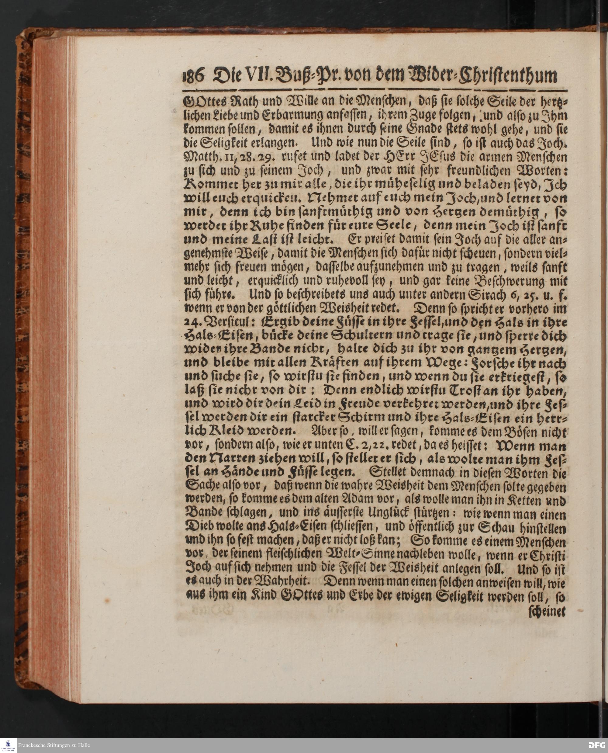 August Hermann Franckens SS.Theol.Prof.Ord.& Past.Vlriciani, Buß=Predigten, Darinnen aus verschiedenen Texten Heil. Schrift deutlich gezeiget wird, Wie nicht nur Unbekehrte zur wahren Busse gelangen, sondern auch die, so bekehret sind, in täglicher Busse und Gottseligkeit leben und wandeln sollen. Erster und Anderer Theil. Fünfte Auflage. Mit Königl. Preuß. und Churfl. Brandenb. Privilegio. HALLE, in Verlegung des Waysenhauses, MDCCXLV.