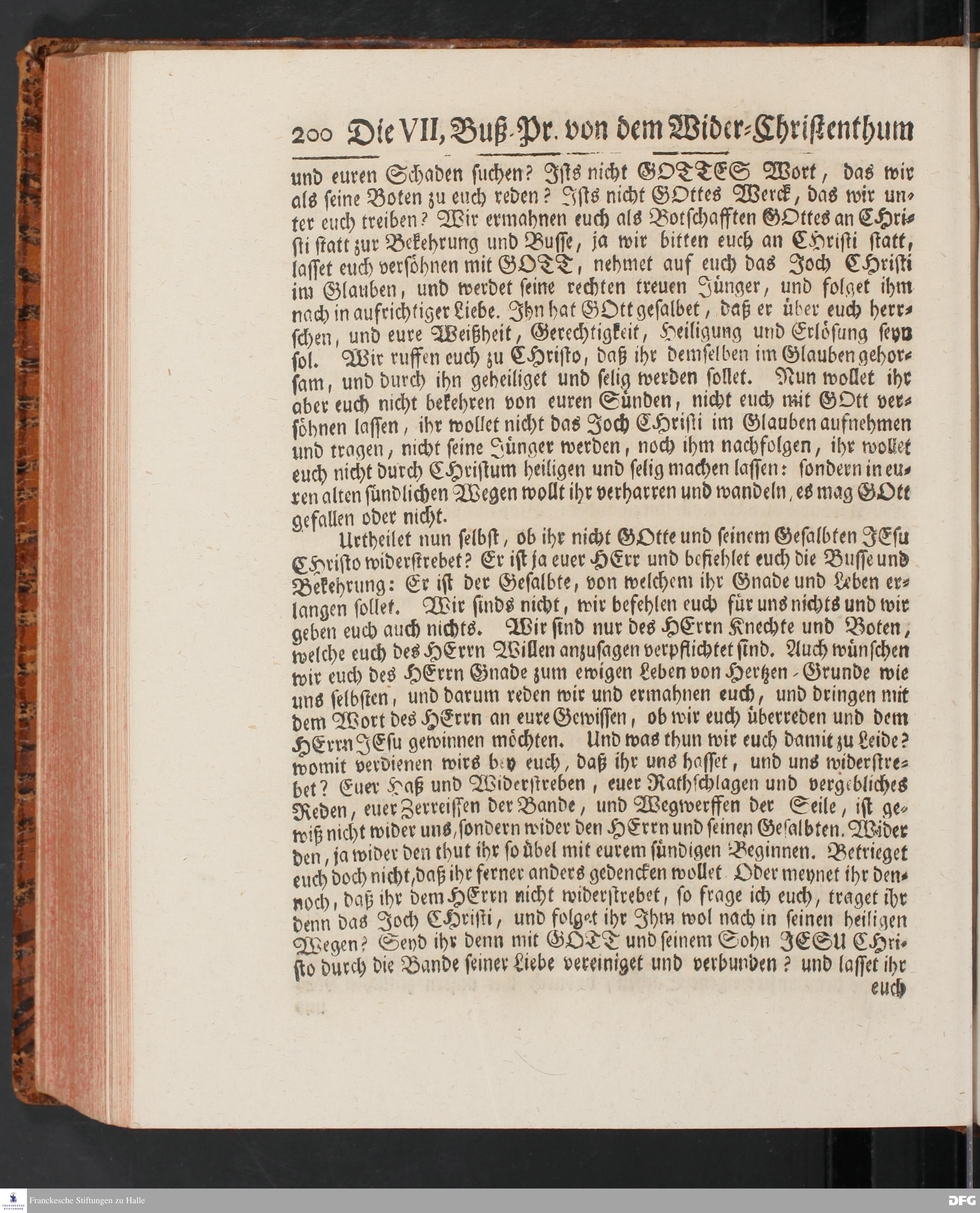 August Hermann Franckens SS.Theol.Prof.Ord.& Past.Vlriciani, Buß=Predigten, Darinnen aus verschiedenen Texten Heil. Schrift deutlich gezeiget wird, Wie nicht nur Unbekehrte zur wahren Busse gelangen, sondern auch die, so bekehret sind, in täglicher Busse und Gottseligkeit leben und wandeln sollen. Erster und Anderer Theil. Fünfte Auflage. Mit Königl. Preuß. und Churfl. Brandenb. Privilegio. HALLE, in Verlegung des Waysenhauses, MDCCXLV.