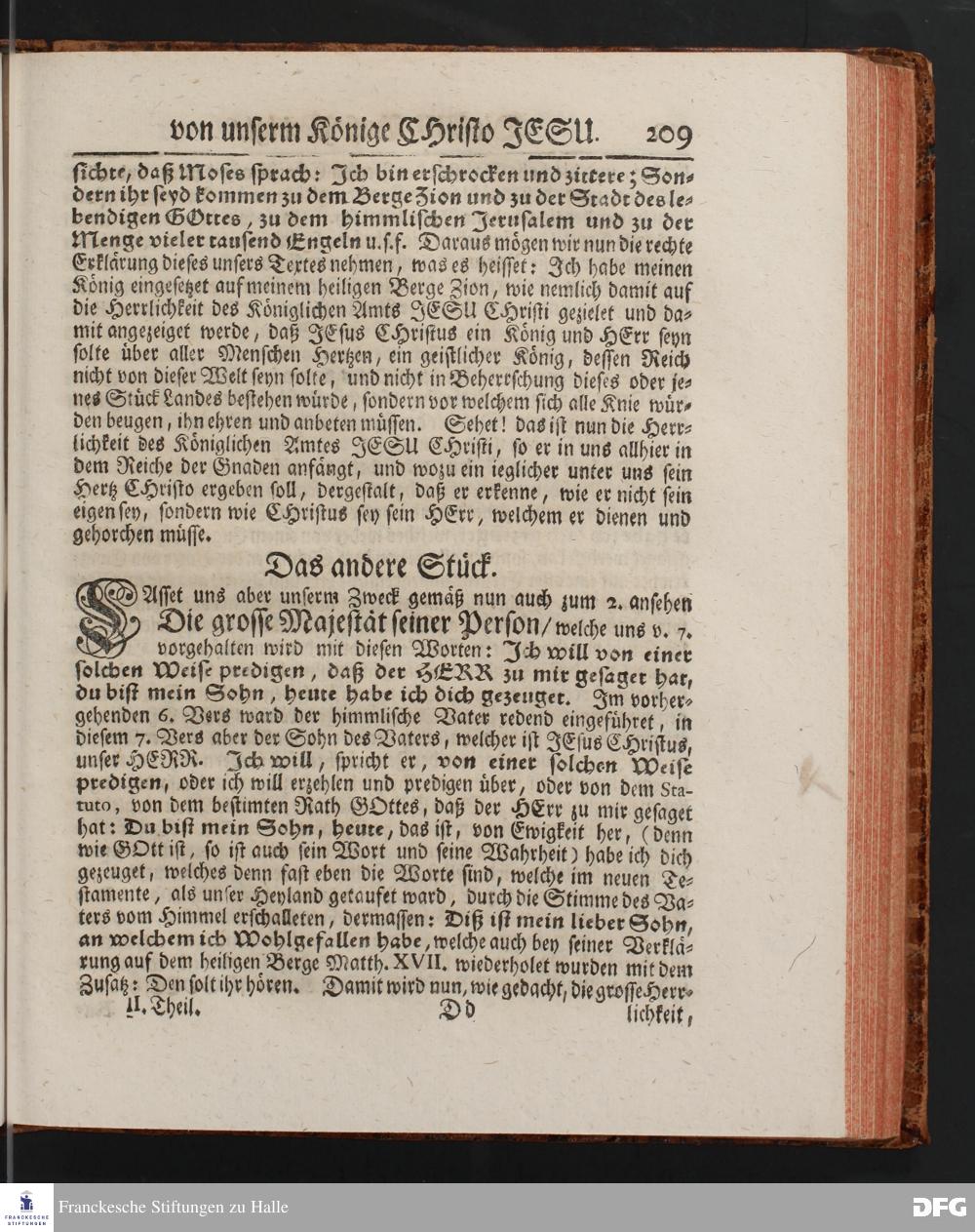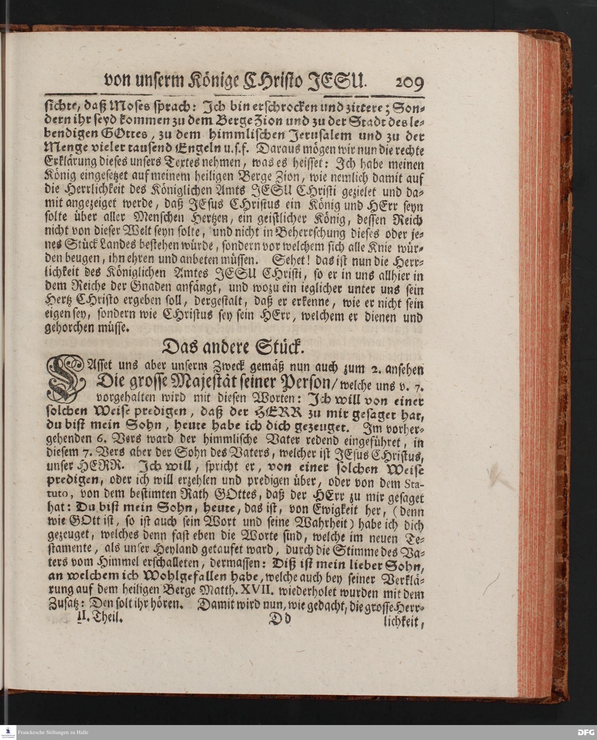 August Hermann Franckens SS.Theol.Prof.Ord.& Past.Vlriciani, Buß=Predigten, Darinnen aus verschiedenen Texten Heil. Schrift deutlich gezeiget wird, Wie nicht nur Unbekehrte zur wahren Busse gelangen, sondern auch die, so bekehret sind, in täglicher Busse und Gottseligkeit leben und wandeln sollen. Erster und Anderer Theil. Fünfte Auflage. Mit Königl. Preuß. und Churfl. Brandenb. Privilegio. HALLE, in Verlegung des Waysenhauses, MDCCXLV.