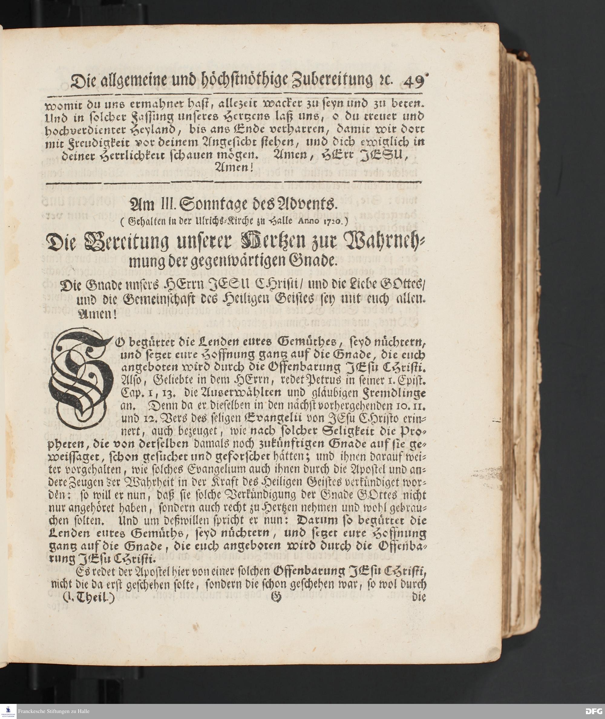 Die Bereitung unserer Hertzen zur Wahrnehmung der gegenwärtigen Gnade. [Predigt] Am III. Sonntage des Advents.