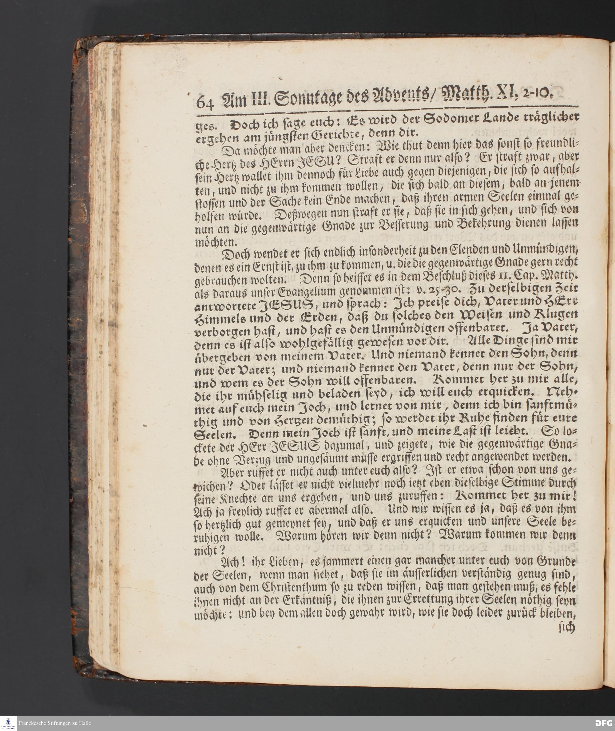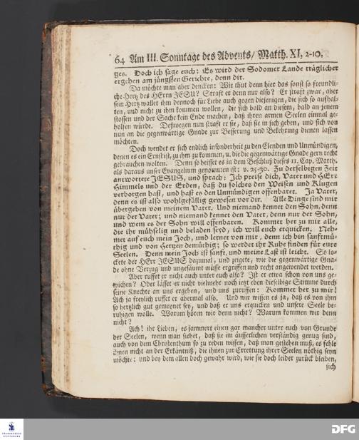 Die Bereitung unserer Hertzen zur Wahrnehmung der gegenwärtigen Gnade. [Predigt] Am III. Sonntage des Advents.