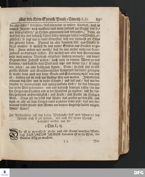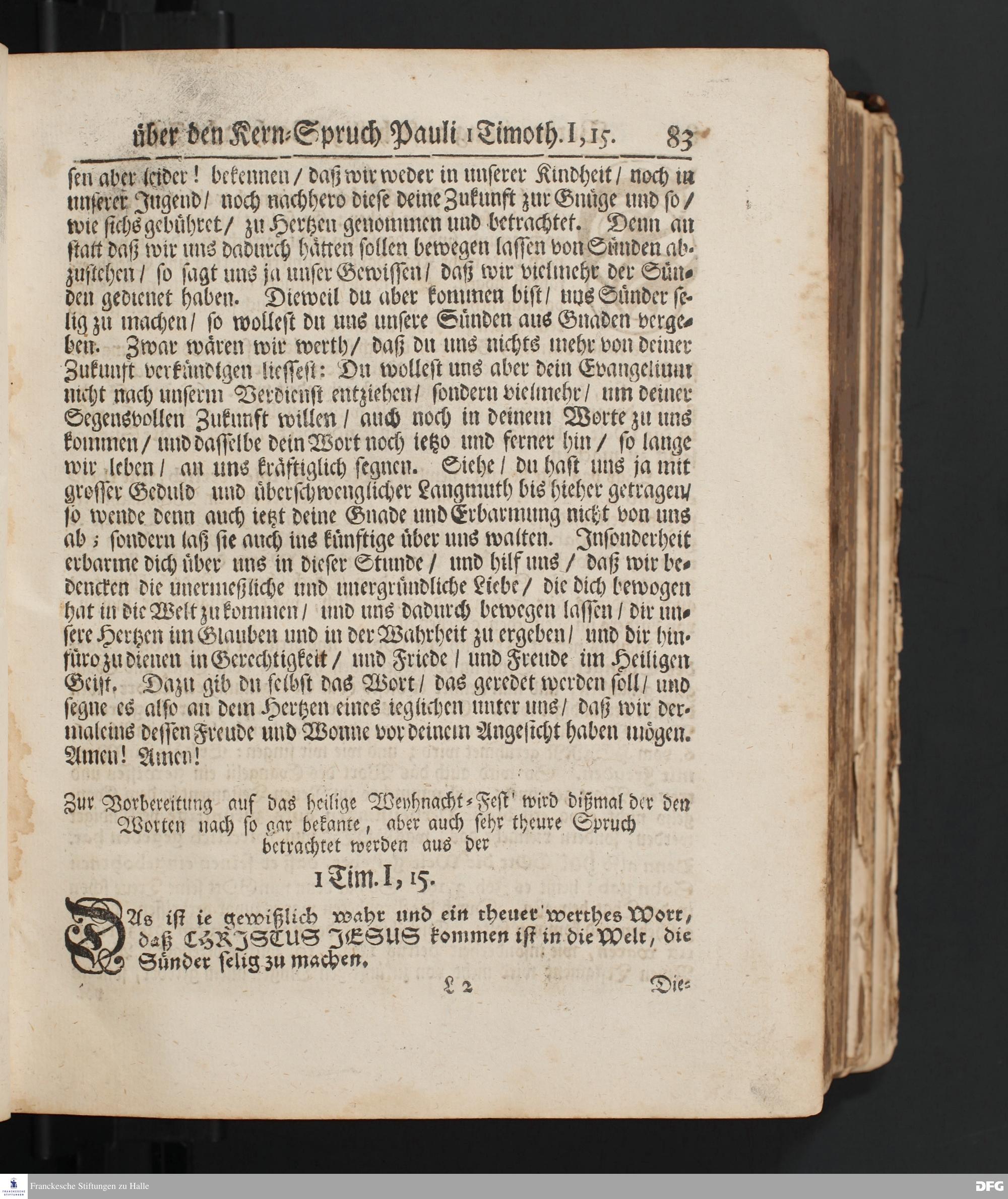 Vorbereitung aufs heilige Weyhnachts=Fest über den Kern=Spruch Pauli I Timoth. I, 15.
