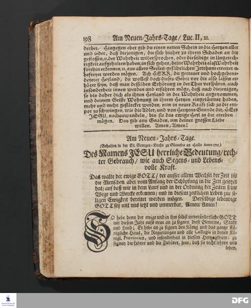 Des Namens JESU herrliche Bedeutung / rechter Gebrauch / wie auch Segens=und Lebens=volle Kraft. [Predigt] Am Neuen=Jahrs=Tage.
