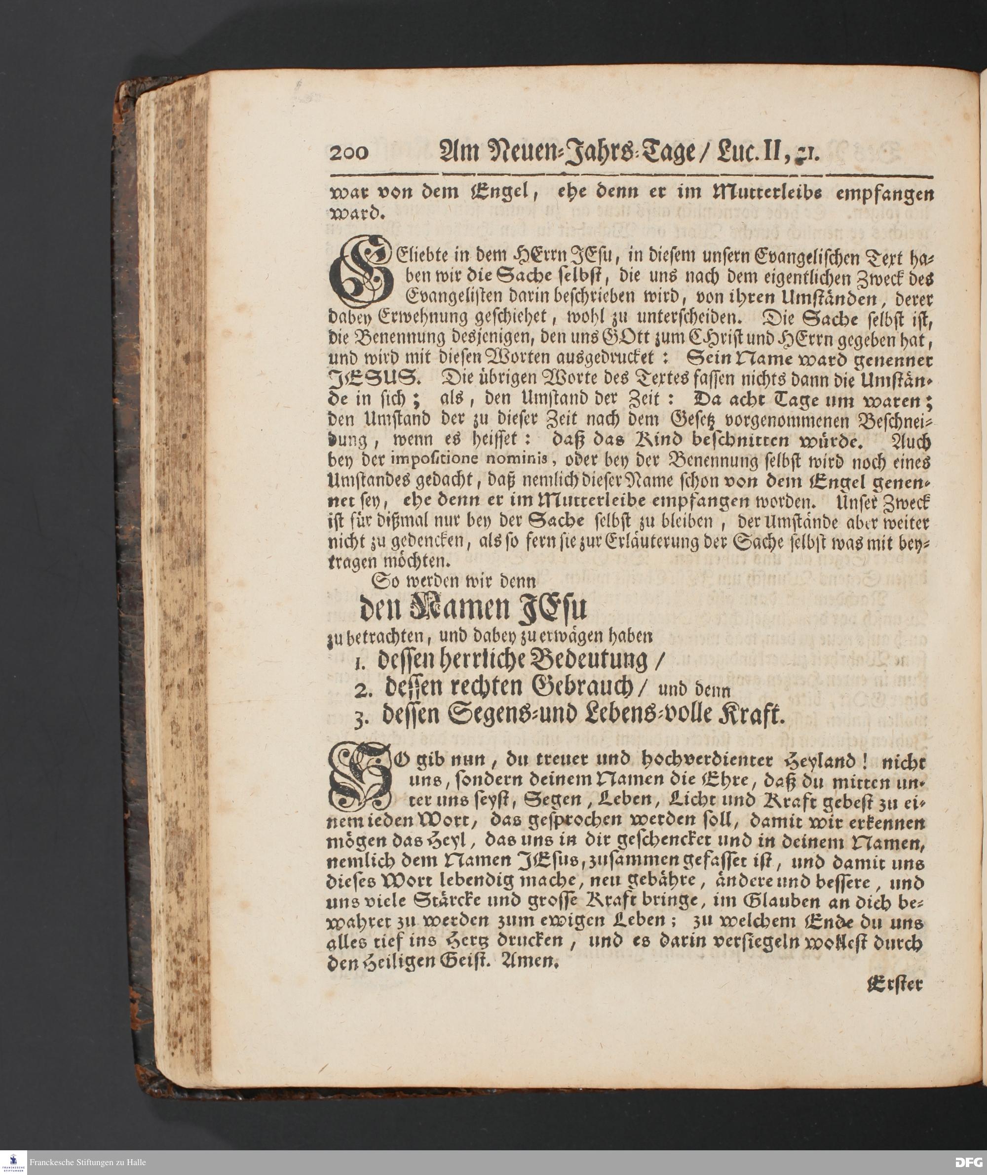 Des Namens JESU herrliche Bedeutung / rechter Gebrauch / wie auch Segens=und Lebens=volle Kraft. [Predigt] Am Neuen=Jahrs=Tage.