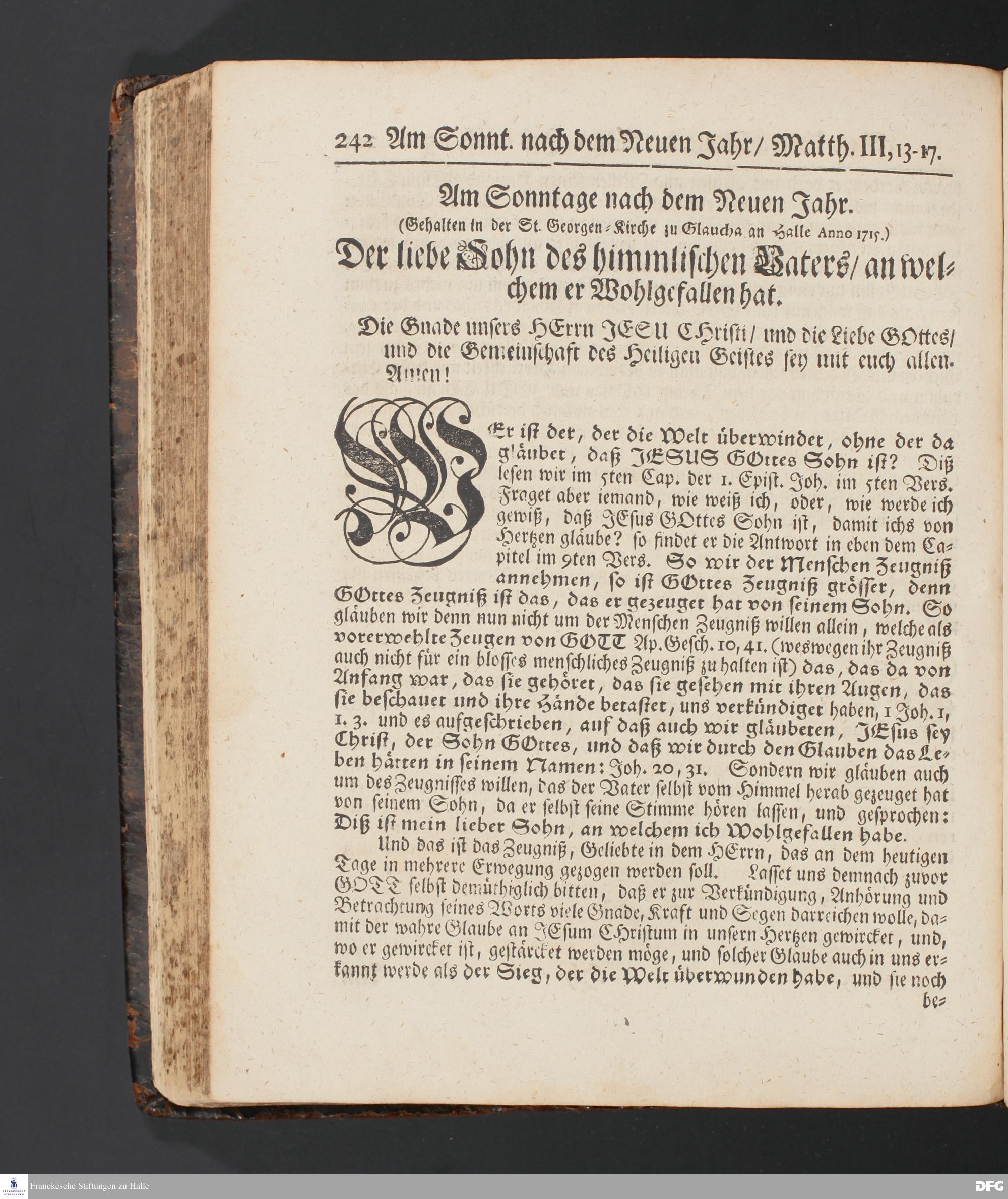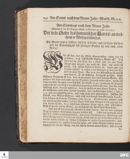 Der liebe Sohn des himmlischen Vaters / an welchem er Wohlgefallen hat. [Predigt] Am Sonntage nach dem Neuen Jahr.