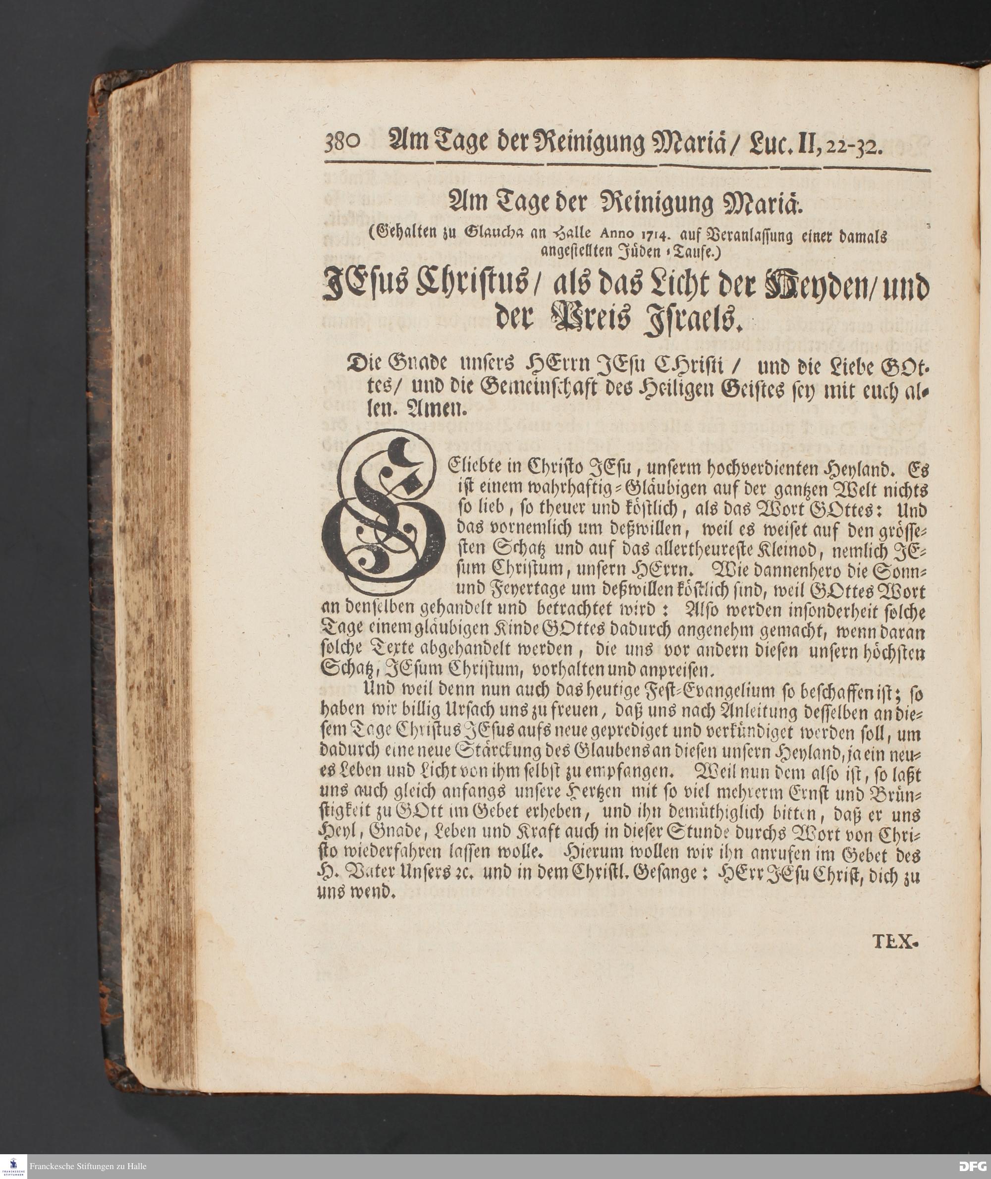 (Gehalten zu Glaucha an Halle Anno 1714. auf Veranlassung einer damals angestellten Juden=Taufe.)