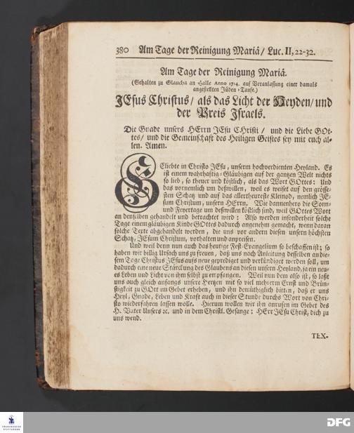 JEsus Christus / als das Licht der Heyden / und der Preis Isräls. [Predigt] Am Tage der Reinigung Mariä.