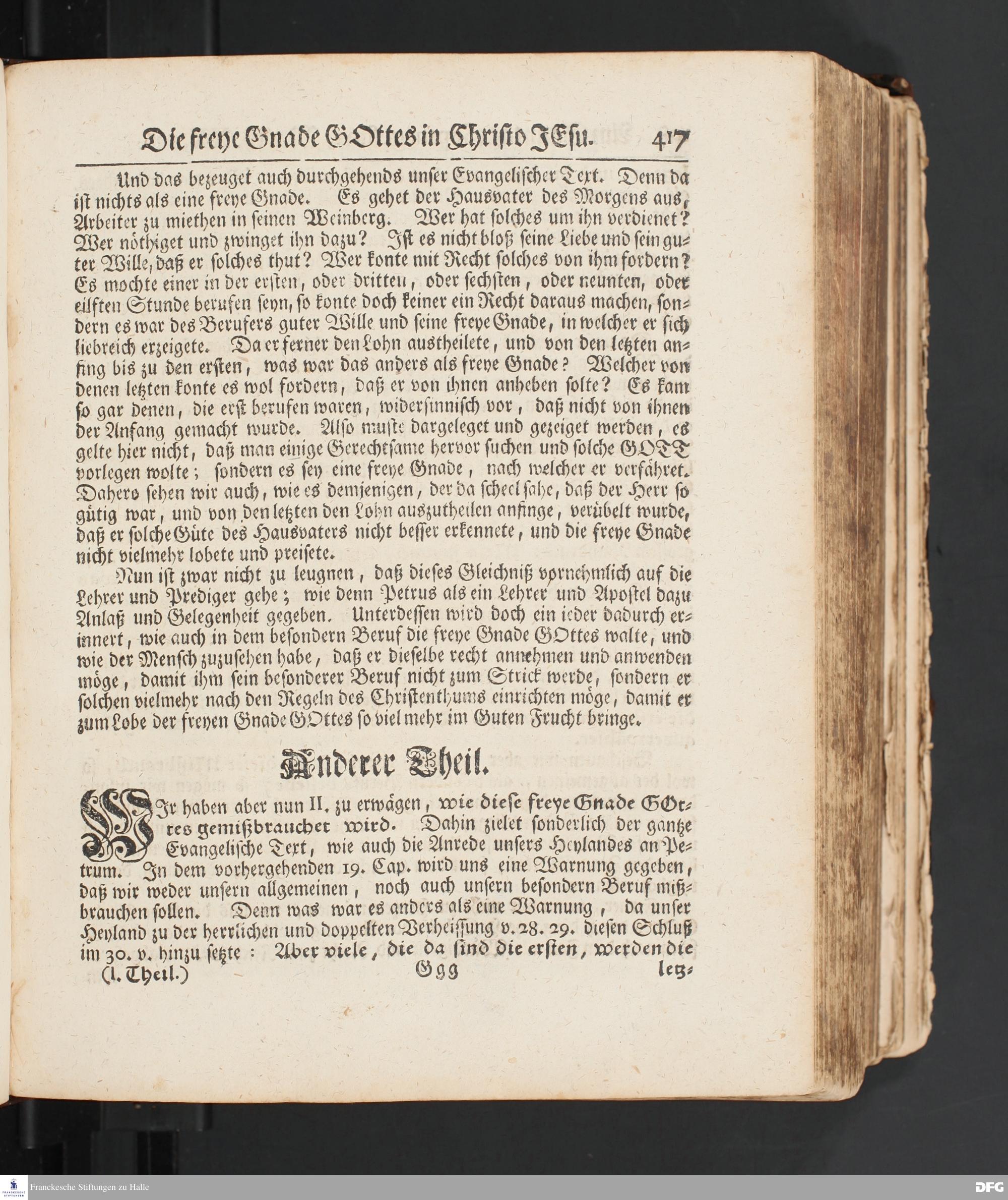 Von der freyen Gnade GOttes in CHristo JESU. [Predigt] Am Sonntage Septuagesima.