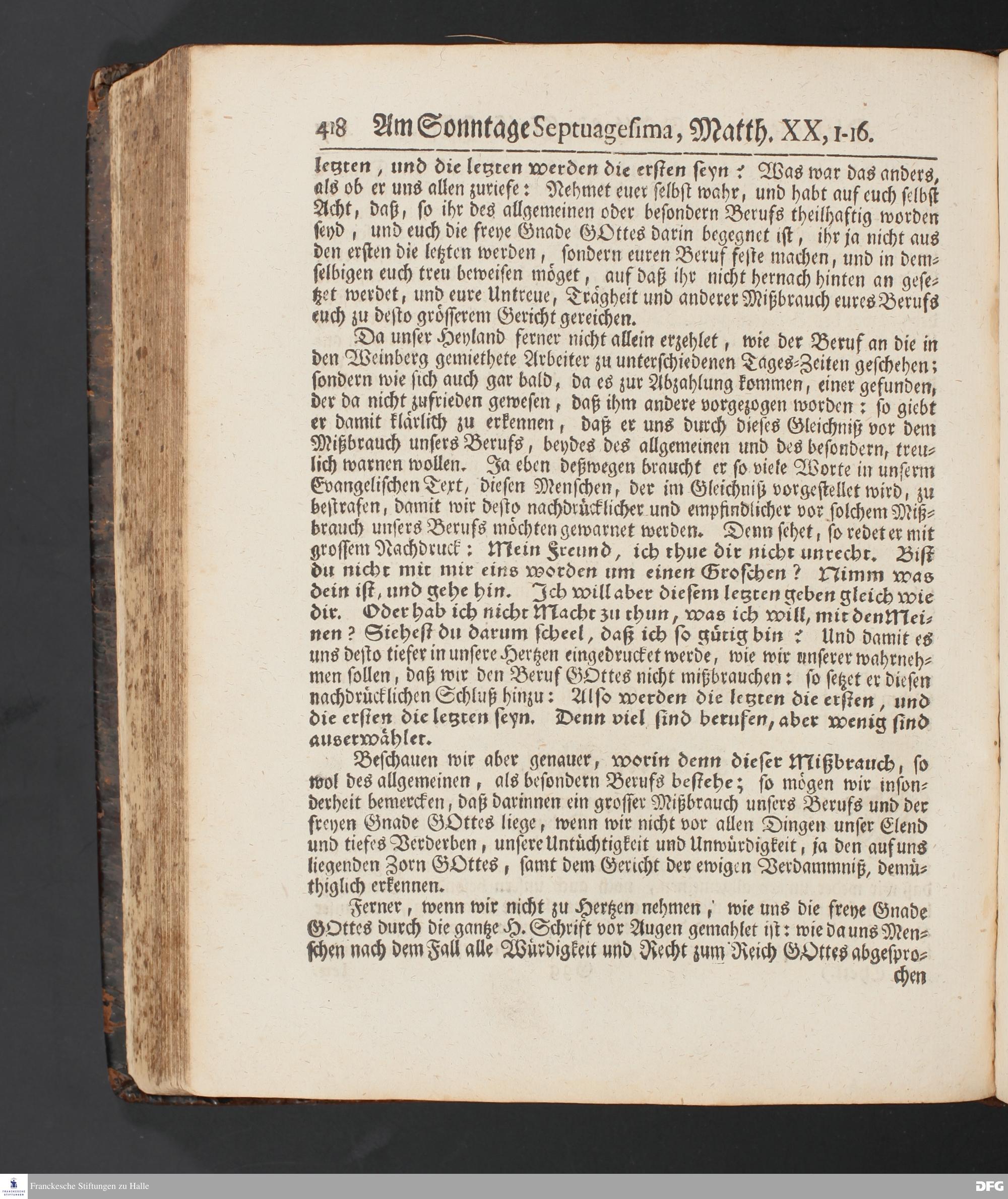 Von der freyen Gnade GOttes in CHristo JESU. [Predigt] Am Sonntage Septuagesima....