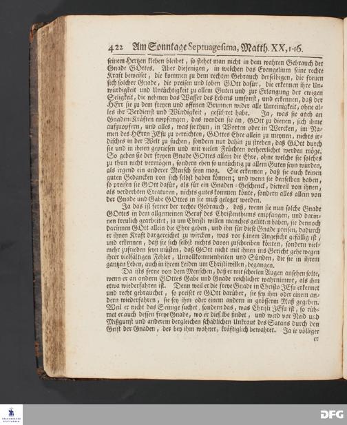 Von der freyen Gnade GOttes in CHristo JESU. [Predigt] Am Sonntage Septuagesima.
