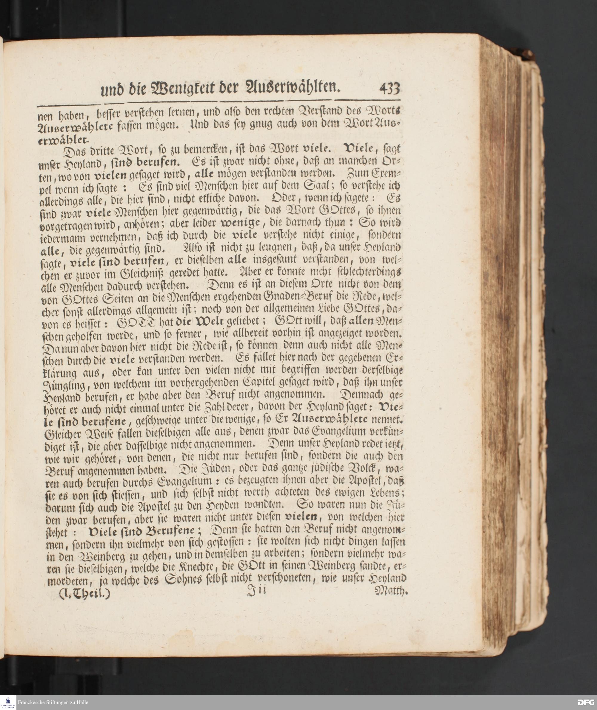 Die Vielheit der Berufenen Und Wenigkeit der Auserwählten / Aus dem Evangelischen Text Matth.XXII, 1-14. Am XX.Sonntag nach Trinitatis MDCCXV [vielmehr MDCCXVI]. In der St.Ulrichs=Kirchen in Halle vorgestellet von August Hermann Francken / S.Theol.Prof.& Past.zu S.Ulrich, und des Gymnasii Scholarcha. HALLE, Gedruckt und zu finden im Wäysen=Hause, 1716.