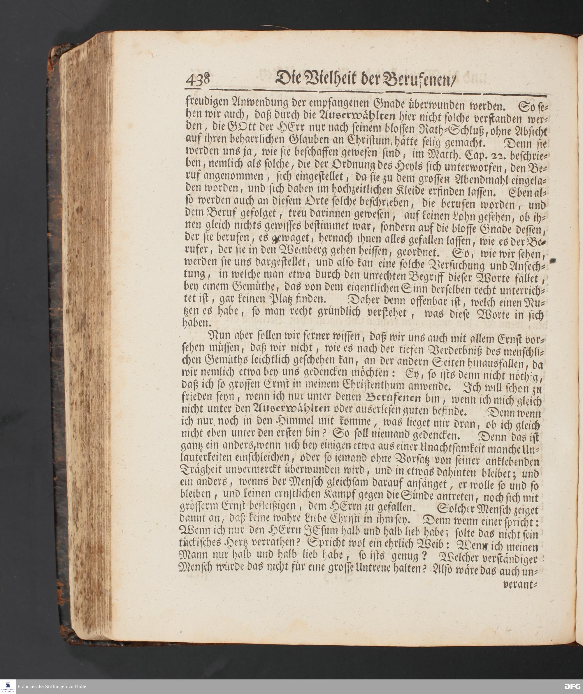 Die Vielheit der Berufenen Und Wenigkeit der Auserwählten / Aus dem Evangelischen Text Matth.XXII, 1-14. Am XX.Sonntag nach Trinitatis MDCCXV [vielmehr MDCCXVI]. In der St.Ulrichs=Kirchen in Halle vorgestellet von August Hermann Francken / S.Theol.Prof.& Past.zu S.Ulrich, und des Gymnasii Scholarcha. HALLE, Gedruckt und zu finden im Wäysen=Hause, 1716.