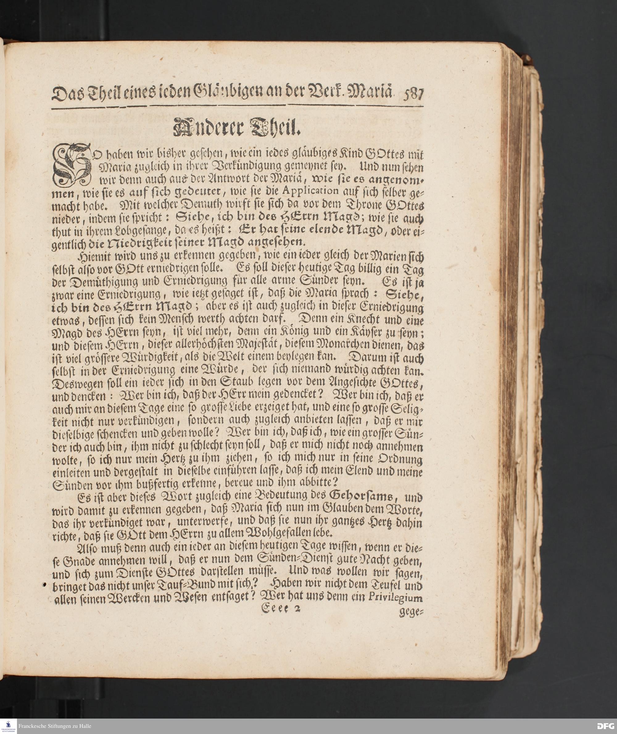 Das Theil eines jeden Gläubigen an der Verkündigung Mariä. [Predigt] Am Tage der Verkündigung Mariä.