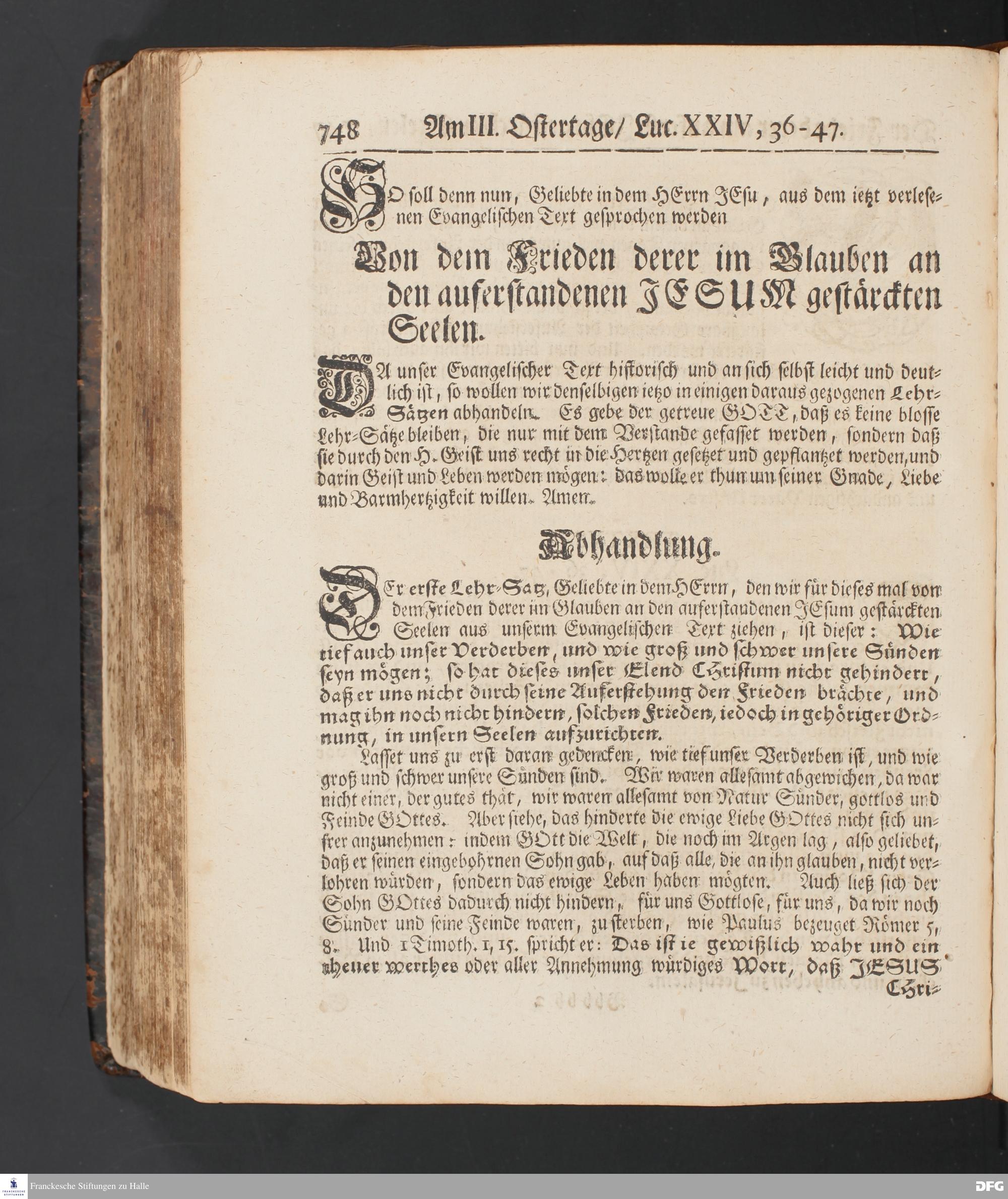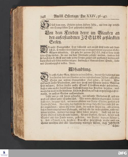 Von dem Frieden derer in dem Glauben an den auferstanden JESUM gestärckten Seelen. [Predigt] Am III. Ostertage.