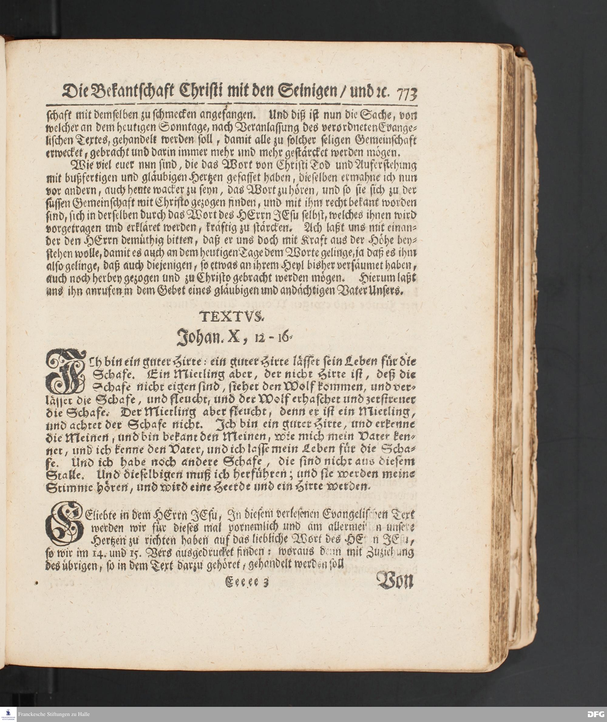 Die Bekantschaft Christi mit den Seinigen / und der Seinigen mit Ihm. [Predigt] Am...