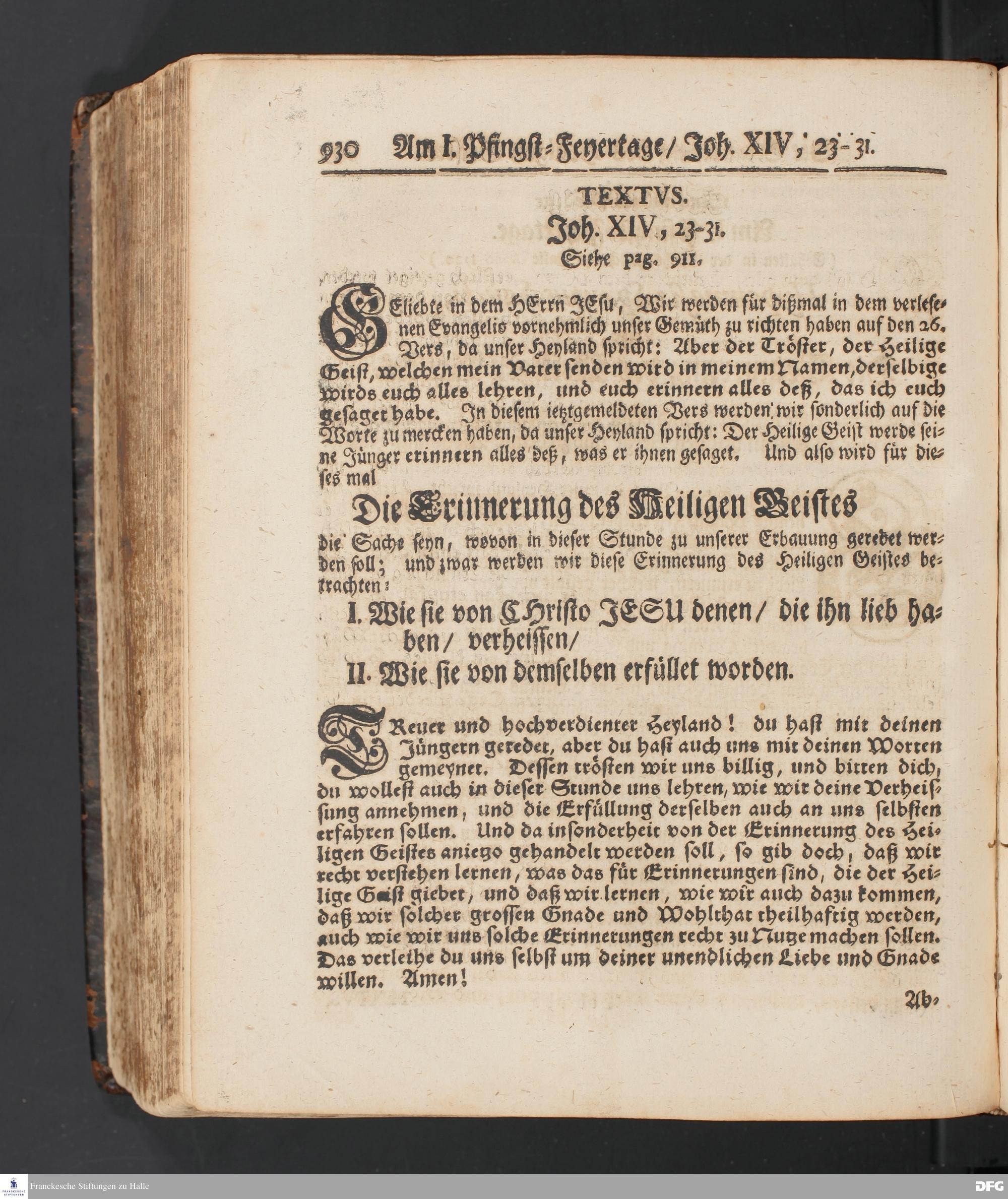 Hypomnesis Spiritus Sancti, Oder Die Erinnerung des Heiligen Geistes. [Predigt] Am I. Pfingst=Feyertage.